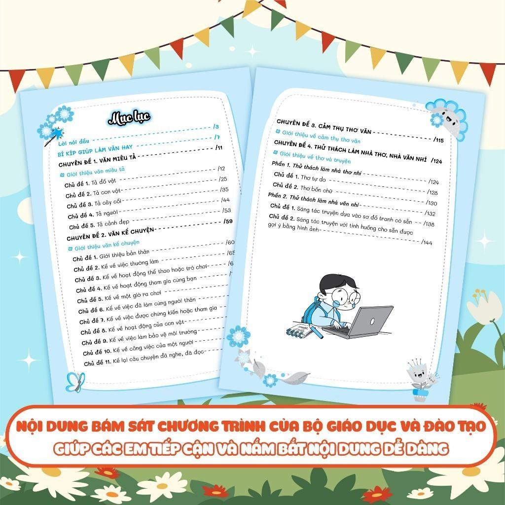 - Sơ đồ tư duy và dàn bài rõ ràng, dễ hiểu: Sách cung cấp sơ đồ tư duy và dàn bài chi tiết, giúp các bạn nhỏ hiểu rõ cấu trúc của một bài văn và cách triển khai ý tưởng một cách có hệ thống.