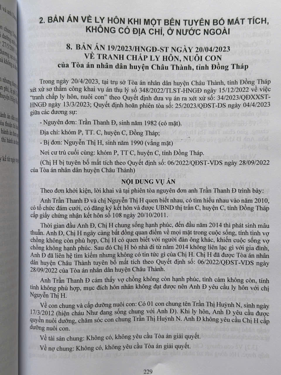 Phần thứ năm. Một số các bản án về hôn nhân gia đình mới nhất