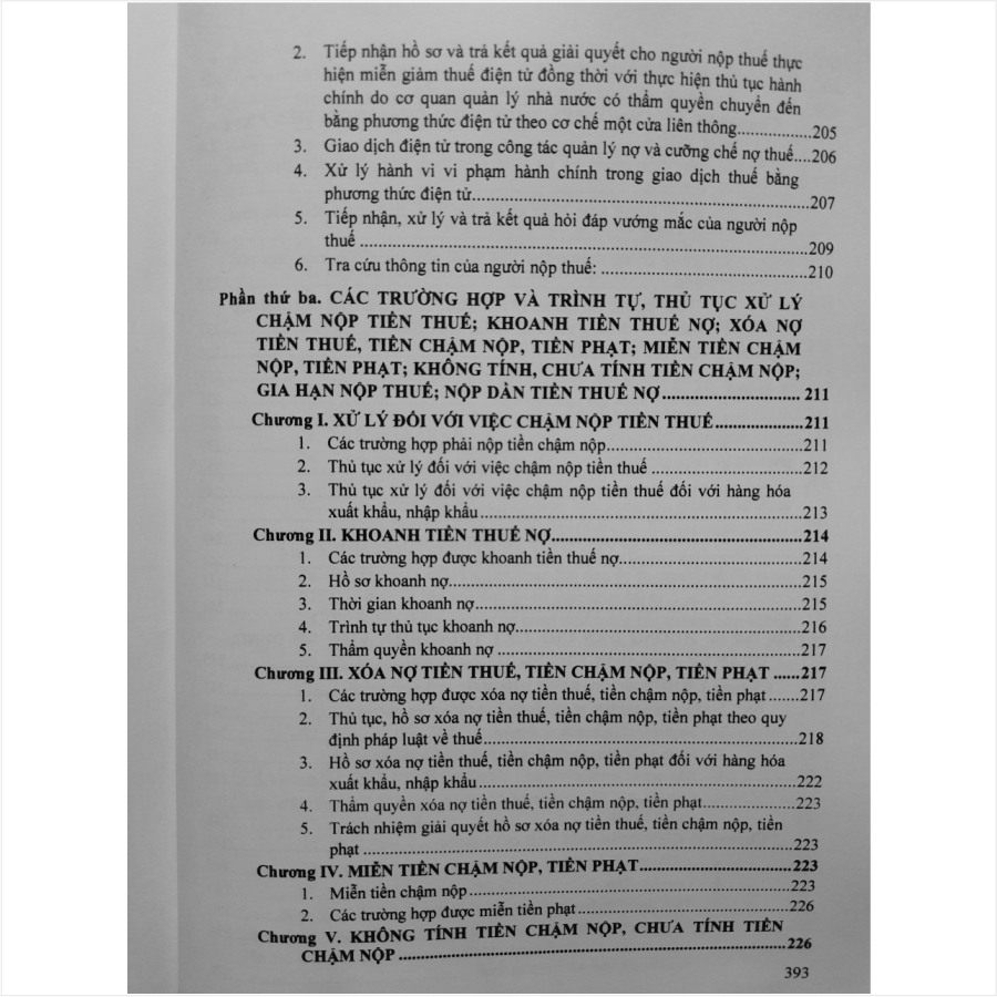 Phần thứ ba. CÁC TRƯỜNG HỢP VÀ TRÌNH TỰ, THỦ TỤC XỬ LÝ CHẬM NỘP TIỀN THUẾ; KHOANH TIỀN THUẾ NỢ; XÓA NỢ TIỀN THUẾ, TIỀN CHẬM NỘP, TIỀN PHẠT; MIỄN TIỀN CHẬM NỘP, TIỀN PHẠT; KHÔNG TÍNH, CHƯA TÍNH TIỀN CHẬM NỘP; GIA HẠN NỘP THUẾ; NỘP DẦN TIỀN THUẾ NỢ;