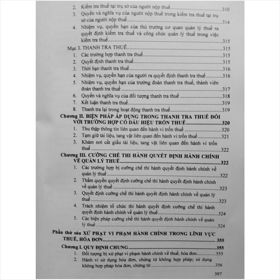 Phần thứ năm. CÁC TRƯỜNG HỢP VÀ QUY TRÌNH, THỦ TỤC KIỂM TRA THUẾ, THANH TRA THUẾ VÀ THỰC HIỆN BIỆN PHÁP PHÒNG, CHỐNG, NGĂN CHẶN VI PHẠM PHÁP LUẬT VỀ THUẾ; CƯỠNG CHẾ THI HÀNH QUYẾT ĐỊNH HÀNH CHÍNH VỀ QUẢN LÝ THUẾ;