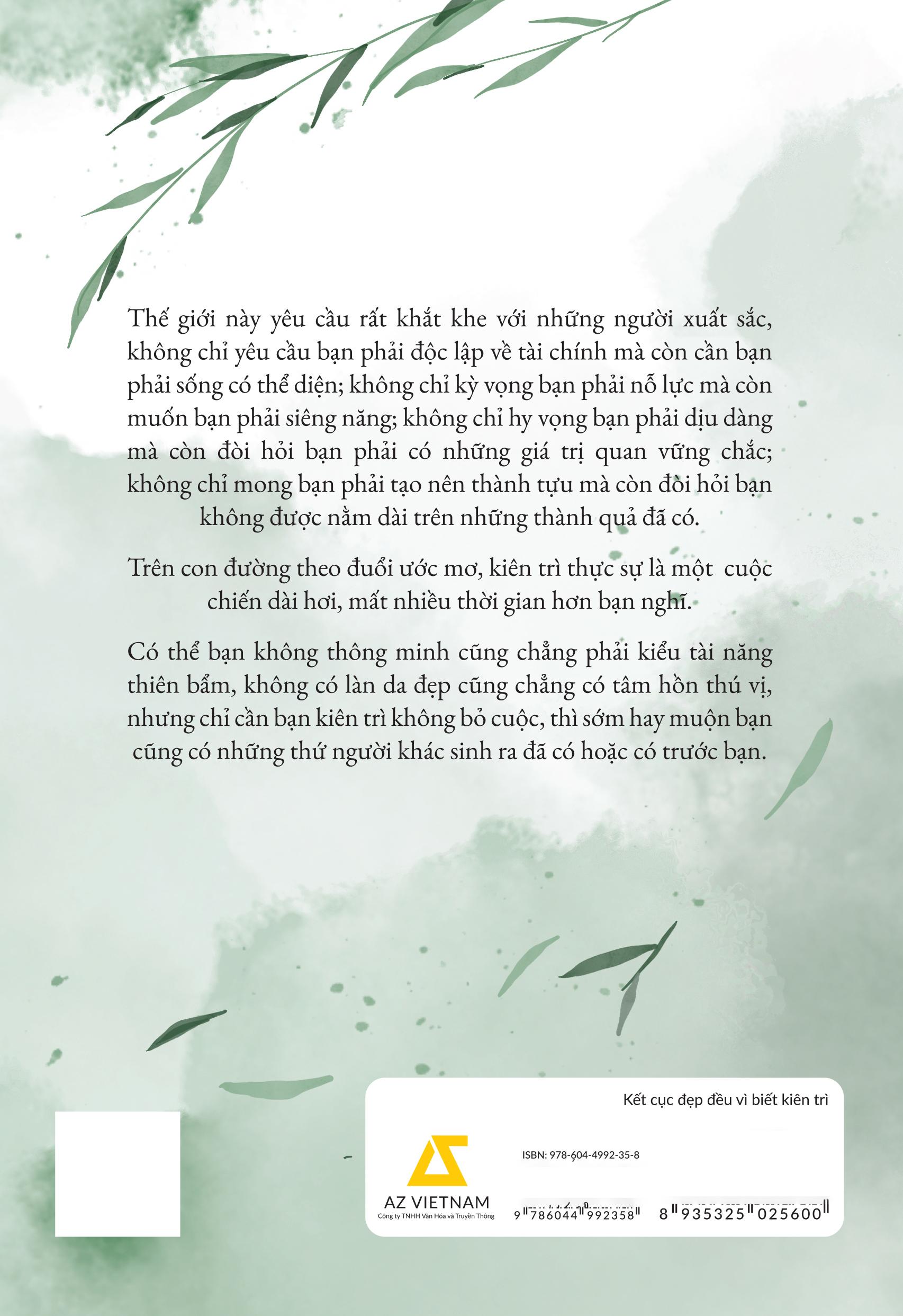 Có thể bạn không thông minh cũng chẳng phải kiểu tài năng thiên bẩm, không có làn da đẹp cũng chẳng có tâm hồn thú vị, nhưng chỉ cần bạn kiên trì không bỏ cuộc, thì sớm hay muộn bạn cũng có những thứ người khác sinh ra đã có hoặc có trước bạn.
