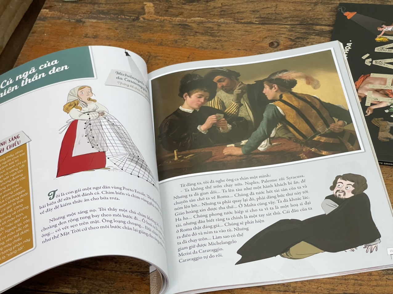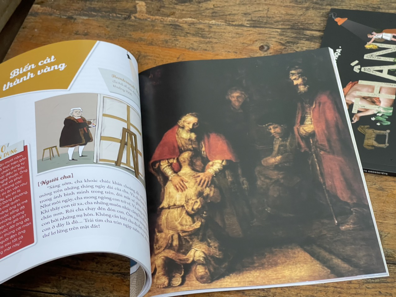 Đó là mẩu chuyện về họa sĩ Sandro Botticelli đập vỡ trứng để trộn màu trong quá trình sáng tác Sự ra đời của thần Vệ Nữ, bật mí danh tính của quý bà trong bức tranh Mona Lisa của Leonardo da Vinci, hay phân tích tâm lí của các nhân vật xuất hiện trong Sự trở về của đứa con hoang đàng của Rembrandt, câu chuyện hậu trường trong Lớp học múa – Edgar Degas, hoặc lời tự thuật của tác phẩm Guerncia về điều tác giả Picasso muốn thể hiện thông qua hình ảnh trong