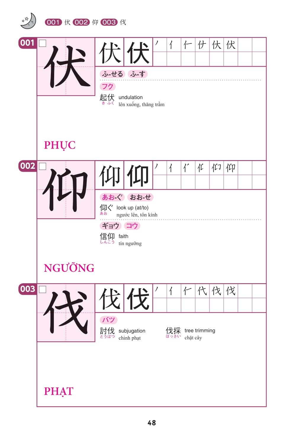 - Các Hán tự được sắp xếp theo cùng một bộ chữ tương tự, giúp nhận ra sự khác biệt và hình dung ra hình dạng của mỗi chữ Hán tự hơn.
