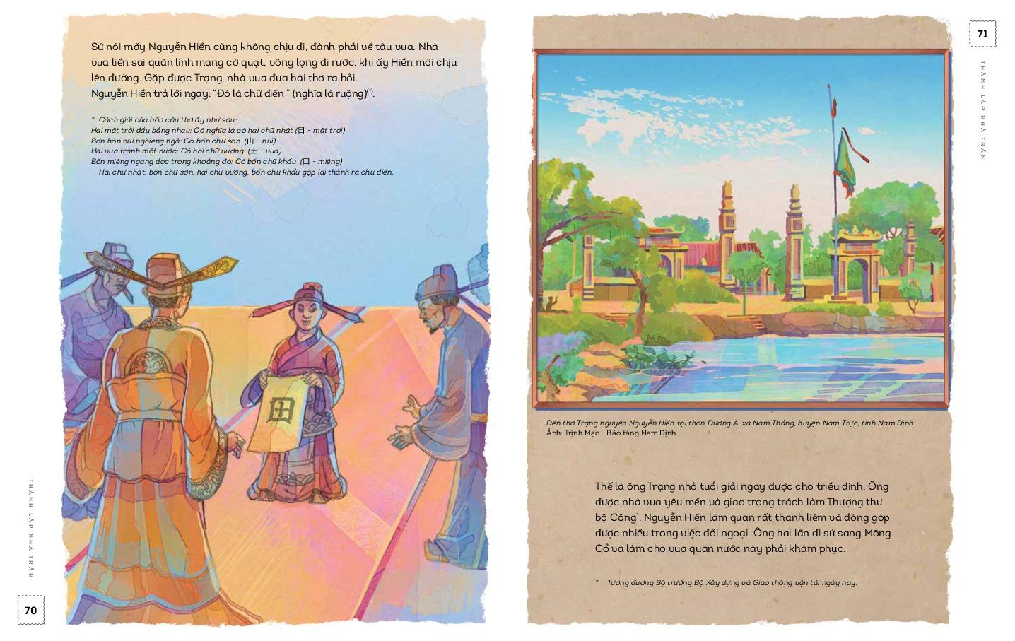 Mua tại TiktokLịch Sử Việt Nam Bằng Tranh - Thành Lập Nhà Trần Nhân nhà Lý suy yếu, nhà Trần với sự phù trợ của Trần Thủ Độ đã thực hiện cuộc chuyển giao quyền lực ít đổ máu nhất trong lịch sử nước ta từ nhà Lý sang nhà Trần. Nhà Trần bắt đầu khi vua Lý Chiêu Hoàng nhường ngôi cho chồng là Trần Cảnh, cũng chính là vua Trần Thái Tông, vị vua đầu tiên của nhà Trần, chấm dứt hoàn toàn vai trò lịch sửa của triều Lý vào năm 1225. Ở buổi đầu thành lập nhà Trần, vai trò của Thái sư Trần Thủ Độ là không thể phủ nhận. Dầu có cả công và tội, dẫu tội to hay công lớn, nhưng lịch sử vẫn mãi lưu danh ông là một bậc đại thần luôn hết lòng tận trung, vì dân vì nước.