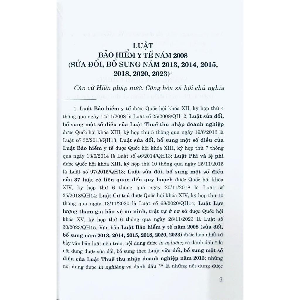 ✨Sách - Luật Bảo Hiểm Y Tế Năm 2008 (Sửa Đổi, Bổ Sung Năm 2103, 2014, 2015, 2018, 2020, 2023) - NXB Chính Trị Quốc Gia