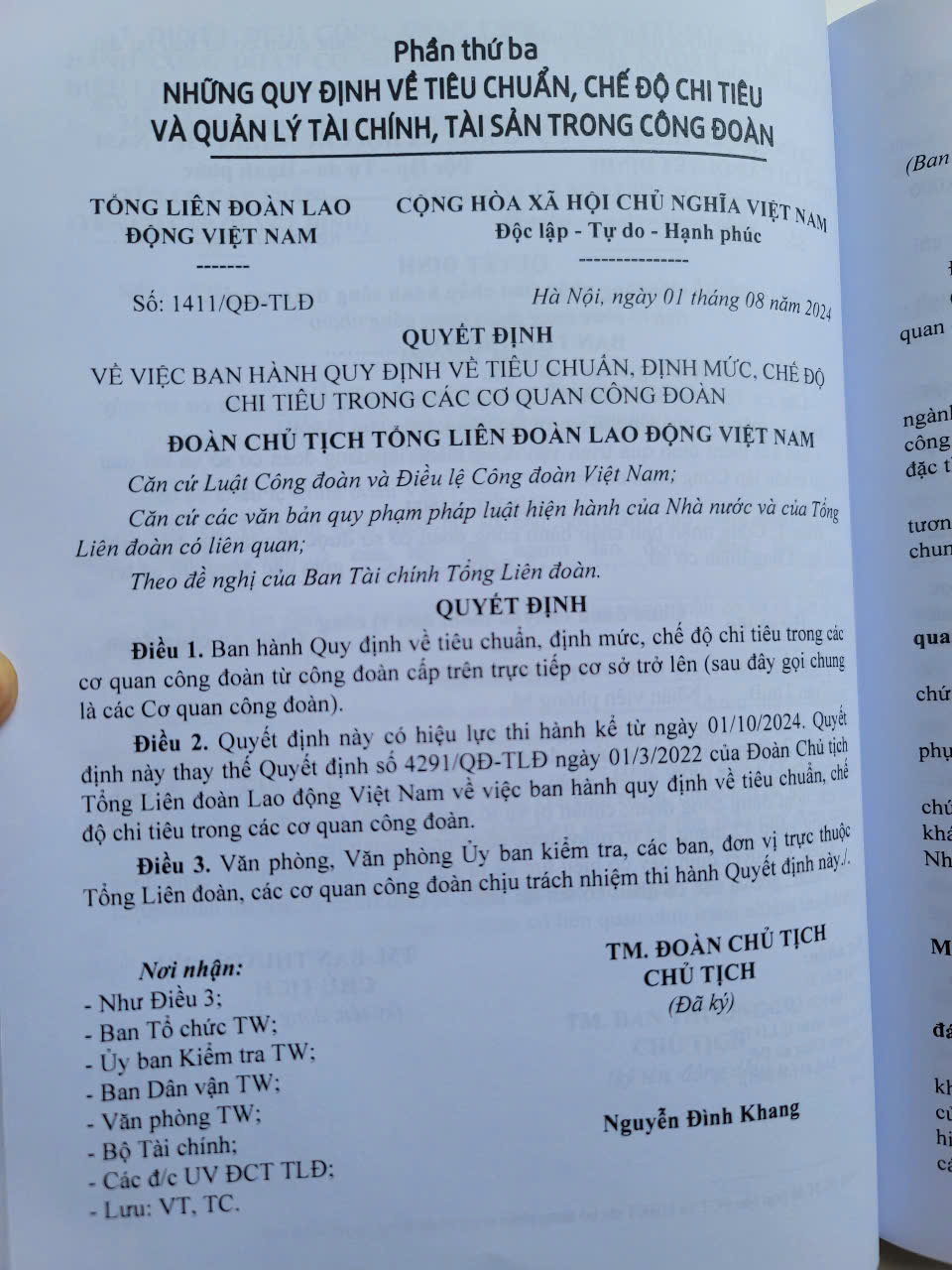 Phần thứ ba. NHỮNG QUY ĐỊNH VỀ TIÊU CHUẨN, CHẾ ĐỘ CHI TIÊU VÀ QUẢN LÝ TÀI CHÍNH, TÀI SẢN TRONG CÔNG ĐOÀN
