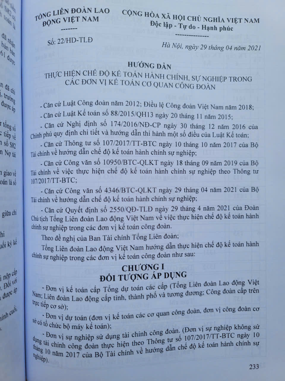 Phần thứ tư. CHẾ ĐỘ KẾ TOÁN ĐỐI VỚI CÔNG ĐOÀN