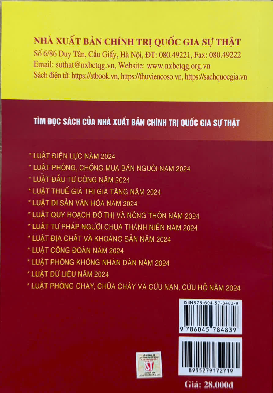 Luật đất đai năm 2024 và các văn bản hướng dẫn thi hành Tác giả: Quốc Hội Nhà xuất bản Công an nhân dân Công ty phát hành: Dân Hiền Xuất bản năm: 8.2024 Số