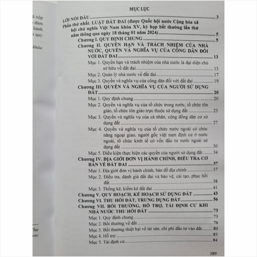 Phần thứ nhất: LUẬT ĐẤT ĐAI 2024 (đã được Quốc hội nước Cộng hòa xã hội chủ nghĩa Việt Nam khóa XV, kỳ họp bất thường lần thứ năm thông qua ngày 18 tháng 01 năm 2024)