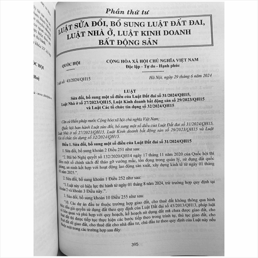✨Sách Luật Đất Đai - Luật Nhà Ở - Luật Kinh Doanh Bất Động Sản và Văn Bản Hướng Dẫn Thi Hành - V2431D