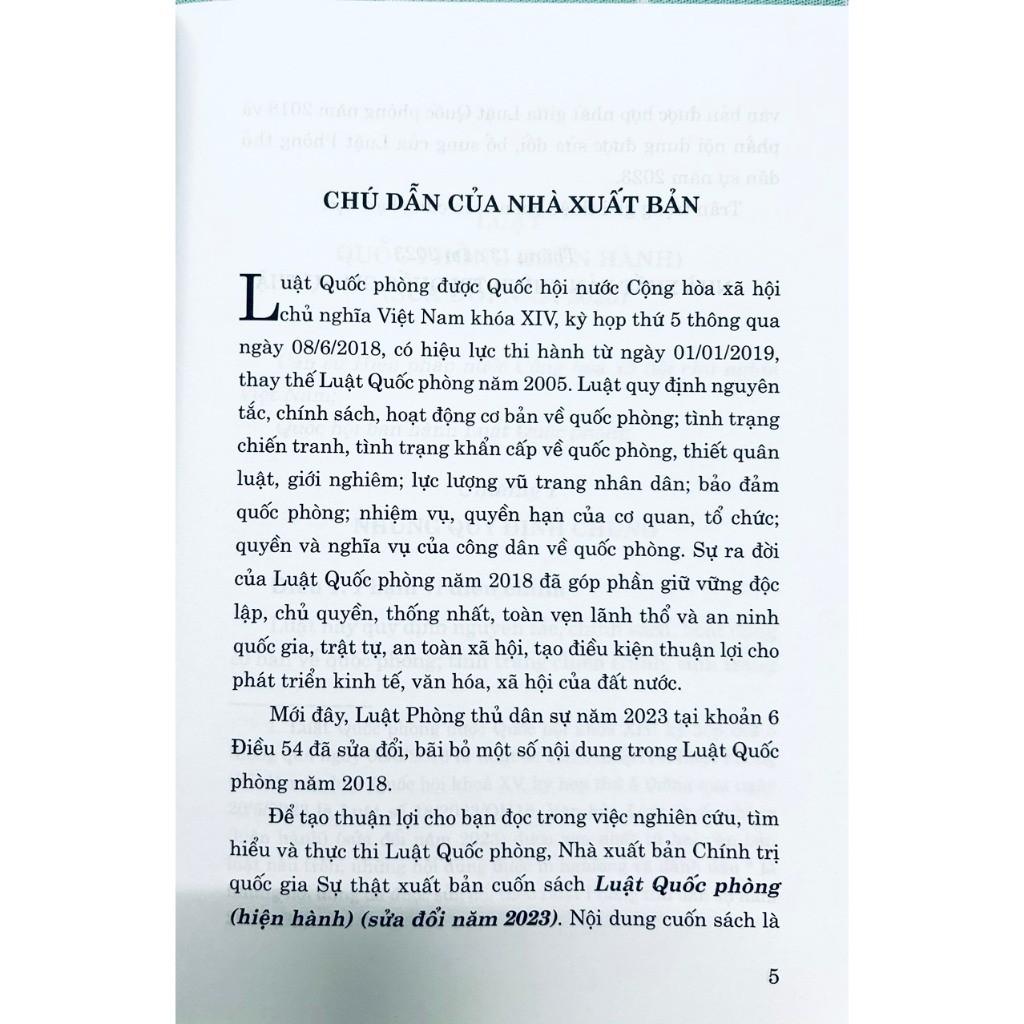 ✨Sách - Luật Quốc Phòng (Hiện Hành) (Sửa Đổi Năm 2023) - NXB Chính Trị Quốc Gia