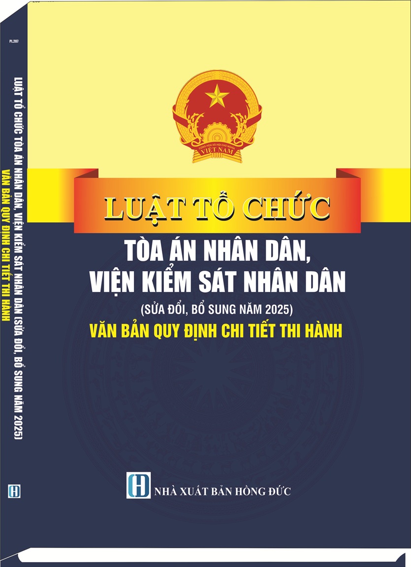 Ngày 24 tháng 6 năm 2025 tại kỳ họp thứ 9 Quốc hội nước Cộng hòa xã hội chủ nghĩa Việt Nam đã thông qua Luật số 81/2025/QH15 ngày 24 tháng 6 năm 2025 của Quốc hội sửa đổi, bổ sung một số điều của Luật Tổ chức Tòa án nhân dân số 34/2024/QH15; Luật số 82/2025/QH15 sửa đổi, bổ sung một số điều của Luật Tổ chức Viện kiểm sát nhân dân số 63/2014/QH13. Nhằm cung cấp những quy định pháp luật mới đến quý đọc giả Nhà xuất bản Hồng Đức xuất bản cuốn sách: