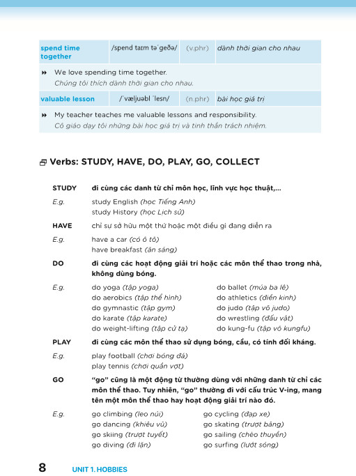 Sách gồm 15 bài học, với nhiều chủ đề đa dạng. Mỗi bài học gồm các bài tập liên quan đến việc sử dụng từ vựng một cách linh hoạt và chuẩn xác. Hệ thống