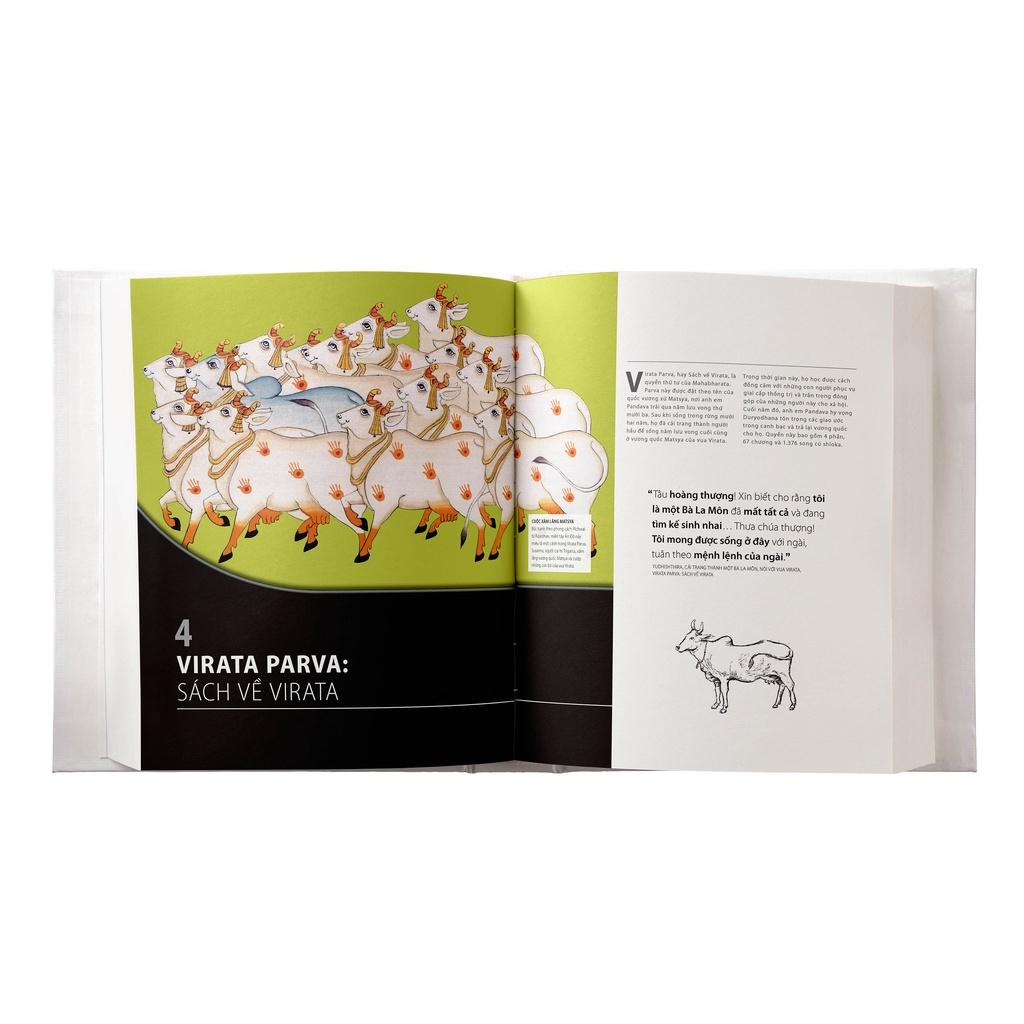 Với "Mahabharata bằng hình - Thiên sử thi vĩ đại nhất của Ấn Độ", DK đem đến cho người đọc một chỉ dẫn tối ưu để đọc hiểu Mahabharata, bằng cách cung cấp các kiến thức căn bản về địa lý, niên biểu lịch sử, chuẩn mực xã hội, nghi lễ, các tín ngưỡng và việc thực hành tín ngưỡng, giới thiệu vị trí của Mahabharata trong hệ thống kinh điển Ấn Độ giáo. Và trên hết là những trang truyện với minh hoạ lộng lẫy. Toàn bộ 18 parva (quyển) của Mahabharata được kể lại với minh hoạ cực kỳ đẹp từ các bản thảo chép tay, cả tranh vẽ lẫn in khắc, đôi khi từ những địa danh không ngờ tới ở bên ngoài Ấn Độ.