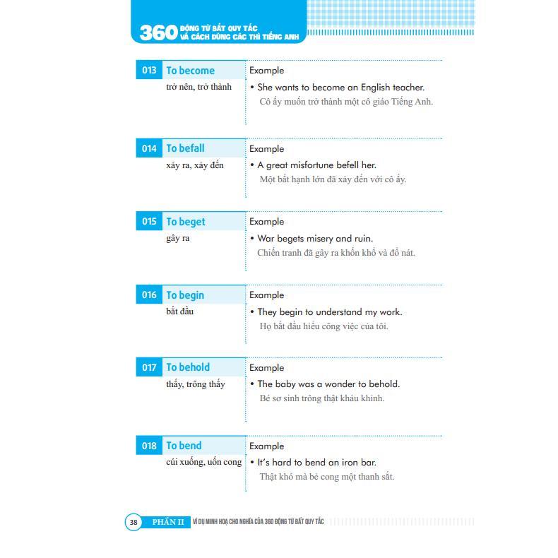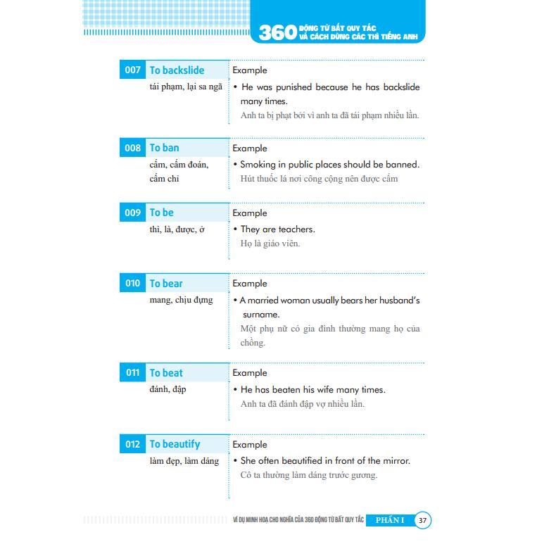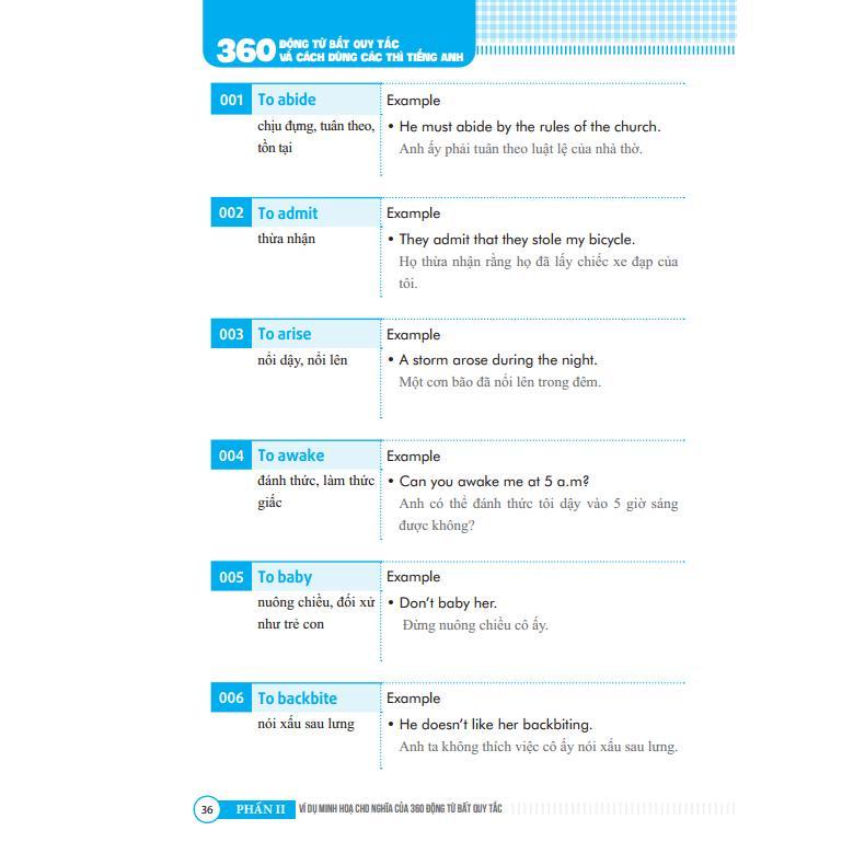 Cùng tham khảo cuốn sách để nắm vững 360 động từ bất quy tắc trong tiếng Anh nhé.