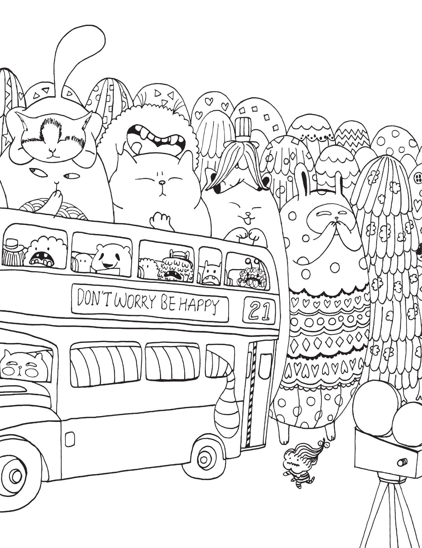 Mỗi trang sách đều được trang trí dày đặc các họa tiết và hoa văn xung quanh nhân vật chính, tạo nên thử thách tô màu chi tiết; đồng thời cũng để một khoảng trống lớn ở giữa để độc giả có thể vẽ thêm các nét, các hình theo trí tưởng tượng riêng.