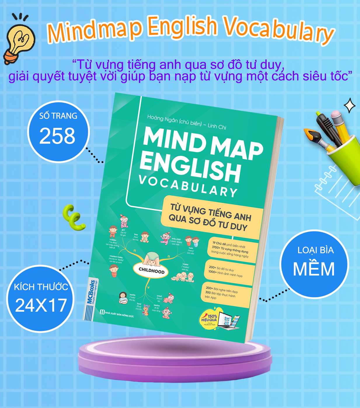 “Mindmap English Vocabulary-Từ vựng Tiếng Anh qua sơ đồ tư duy” giải pháp tuyệt vời giúp bạn nạp từ vựng một cách siêu tốc và đầy bất ngờ.