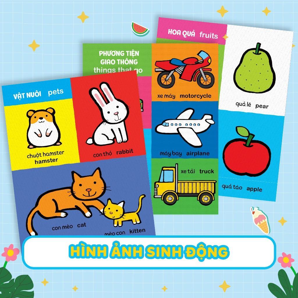 - Sách có mã để nghe toàn bộ phát âm từ vựng theo chủ đề, ngoài ra còn có yếu tố song ngữ Anh - Việt hấp dẫn, giới thiệu những từ vựng, hình ảnh, kiến thức cơ bản, gần gũi đầu tiên dành cho bé.