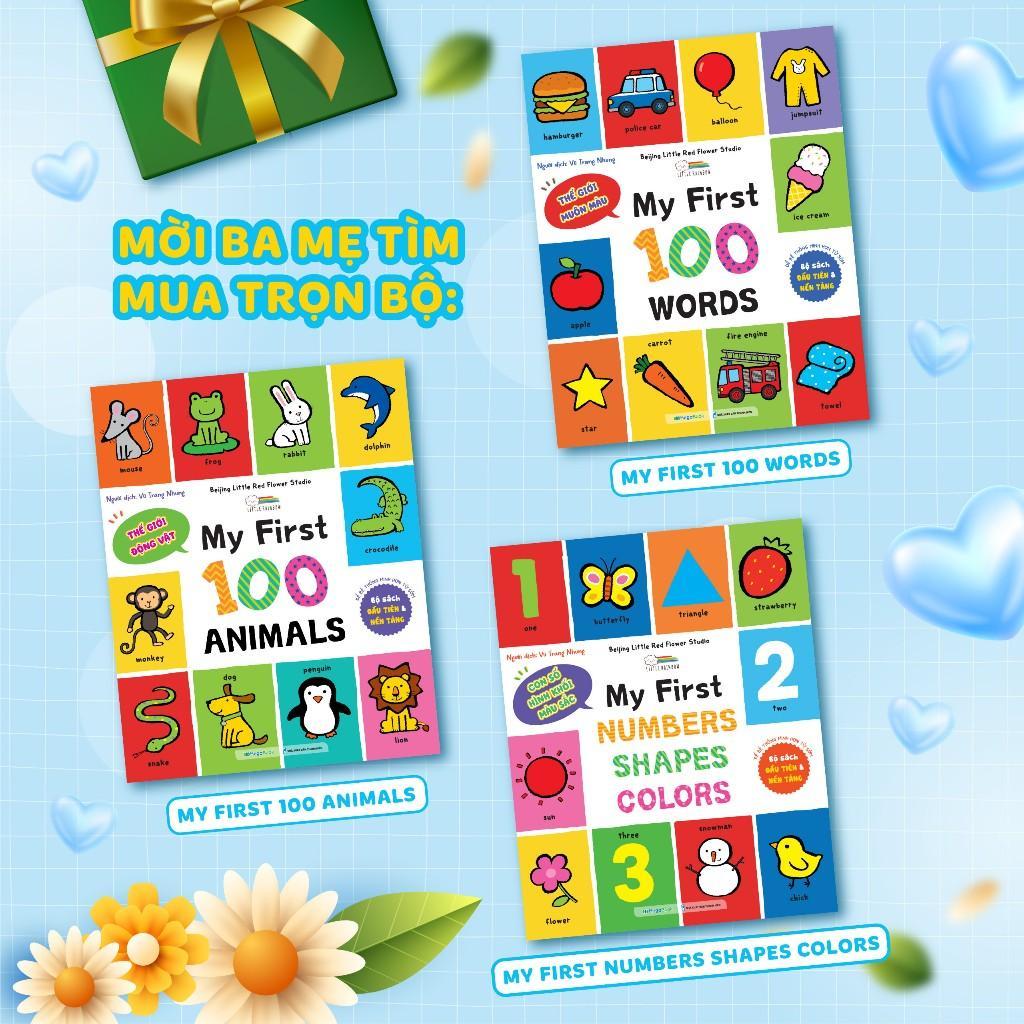 - Bộ sách gồm 3 cuốn: 100 con vật đầu tiên, 100 từ đầu tiên, từ đầu tiên về con số, hình dạng và màu sắc