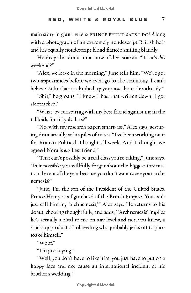 - Instant New York Times and USA Today bestseller * What happens when America's First Son falls in love with the Prince of Wales? Alex Claremont-Diaz is handsome, charismatic, a genius – pure millennial-marketing gold for the White House ever since his mother first became President of the United States. There’s only one problem. When the tabloids get hold of a photo involving an altercation between Alex and Prince Henry, U.S./British relations take a turn for the worse. Heads of family and state devise a plan for damage control: stage a truce. But what begins as a fake, rammable friendship grows deeper, and more dangerous, than either Alex or Henry could have imagined. Soon they are hurtling into a secret romance that could derail the presidential campaign and upend two nations. 'Red, White & Royal Blue is outrageously fun. It is romantic, sexy, witty, and thrilling. I loved every second.' - Taylor Jenkins Reid, New York Times bestselling author of Daisy Jones & The Six
