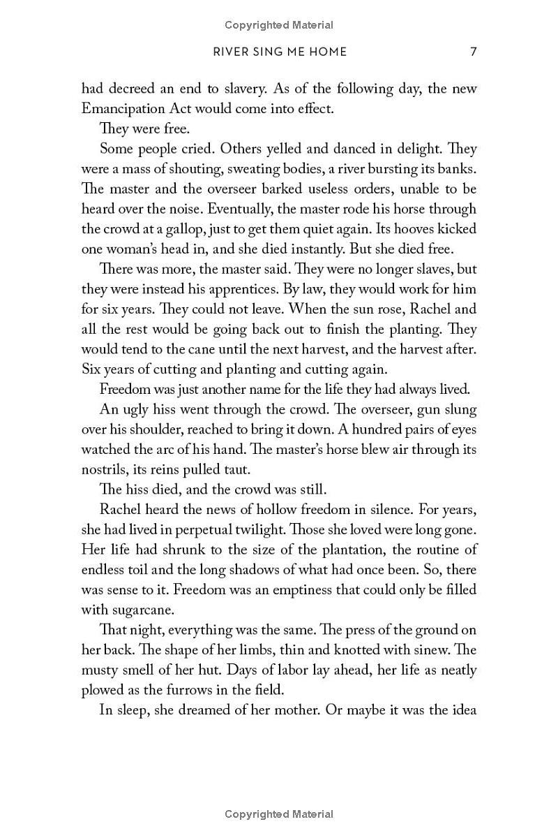 River Sing Me Home A GOOD MORNING AMERICA BOOK CLUB PICK • This beautiful, page-turning and redemptive story of a mother’s gripping journey across the Caribbean to find her stolen children and piece her family back together is a “celebration of motherhood and female resilience” (The Observer). Named One of Time’s 100 Must-Read Books of 2023 • A Dayton Literary Peace Prize Finalist “A powerful novel that explores how freedom and family are truly defined”—Marie Benedict, New York Times bestselling coauthor of The Personal Librarian Her search begins with an ending.… The master of the Providence plantation in Barbados gathers his slaves and announces the king has decreed an end to slavery. As of the following day, the Emancipation Act of 1834 will come into effect. The cries of joy fall silent when he announces that they are no longer his slaves; they are now his apprentices. No one can leave. They must work for him for another six years. Freedom is just another name for the life they have always lived. So Rachel runs. Away from Providence, she begins a desperate search to find her children—the five who survived birth and were sold. Are any of them still alive? Rachel has to know. The grueling, dangerous journey takes her from Barbados then, by river, deep into the forest of British Guiana and finally across the sea to Trinidad. She is driven on by the certainty that a mother cannot be truly free without knowing what has become of her children, even if the answer is more than she can bear. These are the stories of Mary Grace, Micah, Thomas Augustus, Cherry Jane and Mercy. But above all this is the story of Rachel and the extraordinary lengths to which a mother will go to find her children...and her freedom.