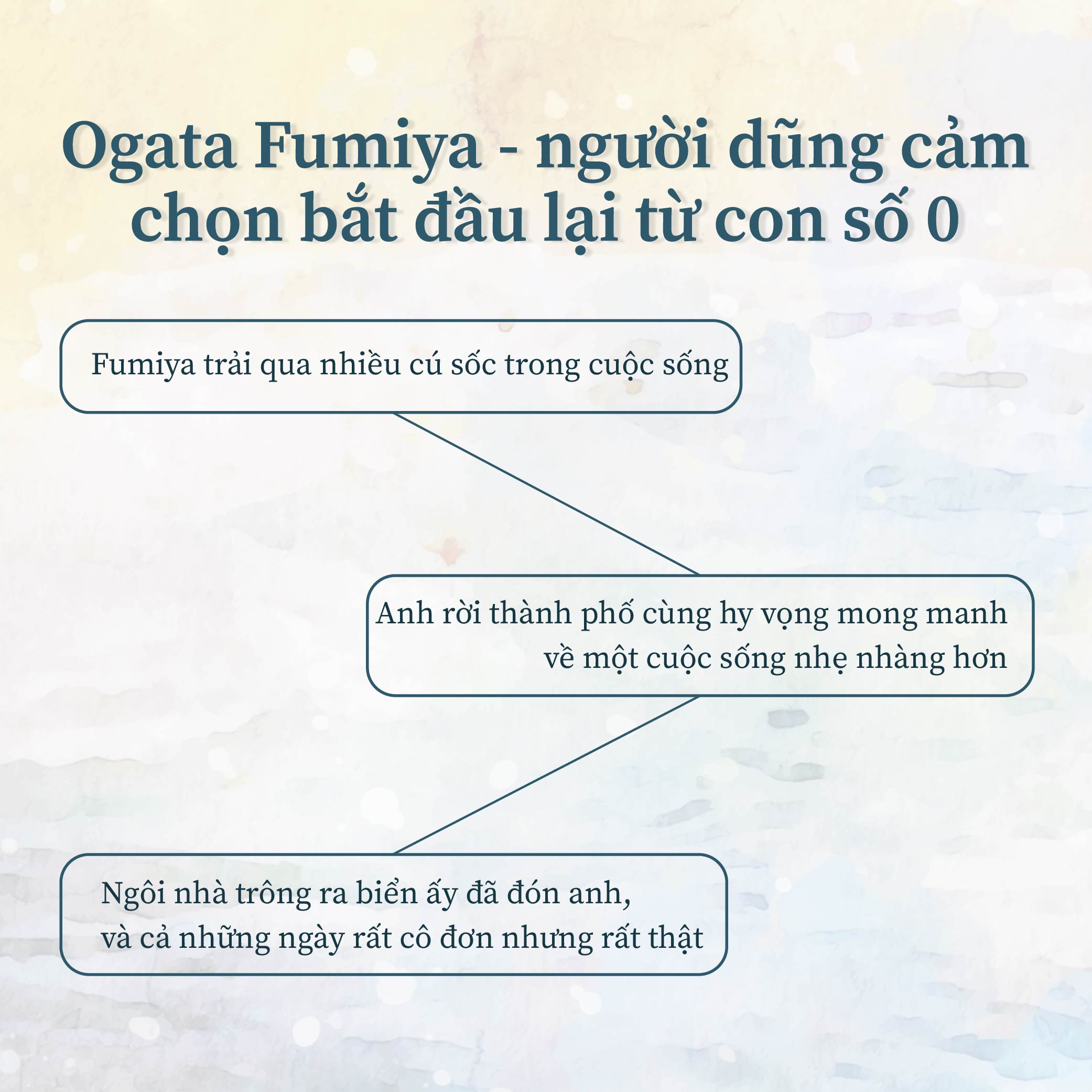 Được viết bằng những câu văn dung dị, nhẹ nhàng nhưng lại chứa đựng thông điệp chân thành và sâu sắc về cuộc sống, hãy đồng hành với Fumiya để tìm ra câu trả lời và cùng anh khám phá, kiếm tìm một cách sống mới mẻ, trọn vẹn, cũng như ý nghĩa hơn trên cuộc đời này.