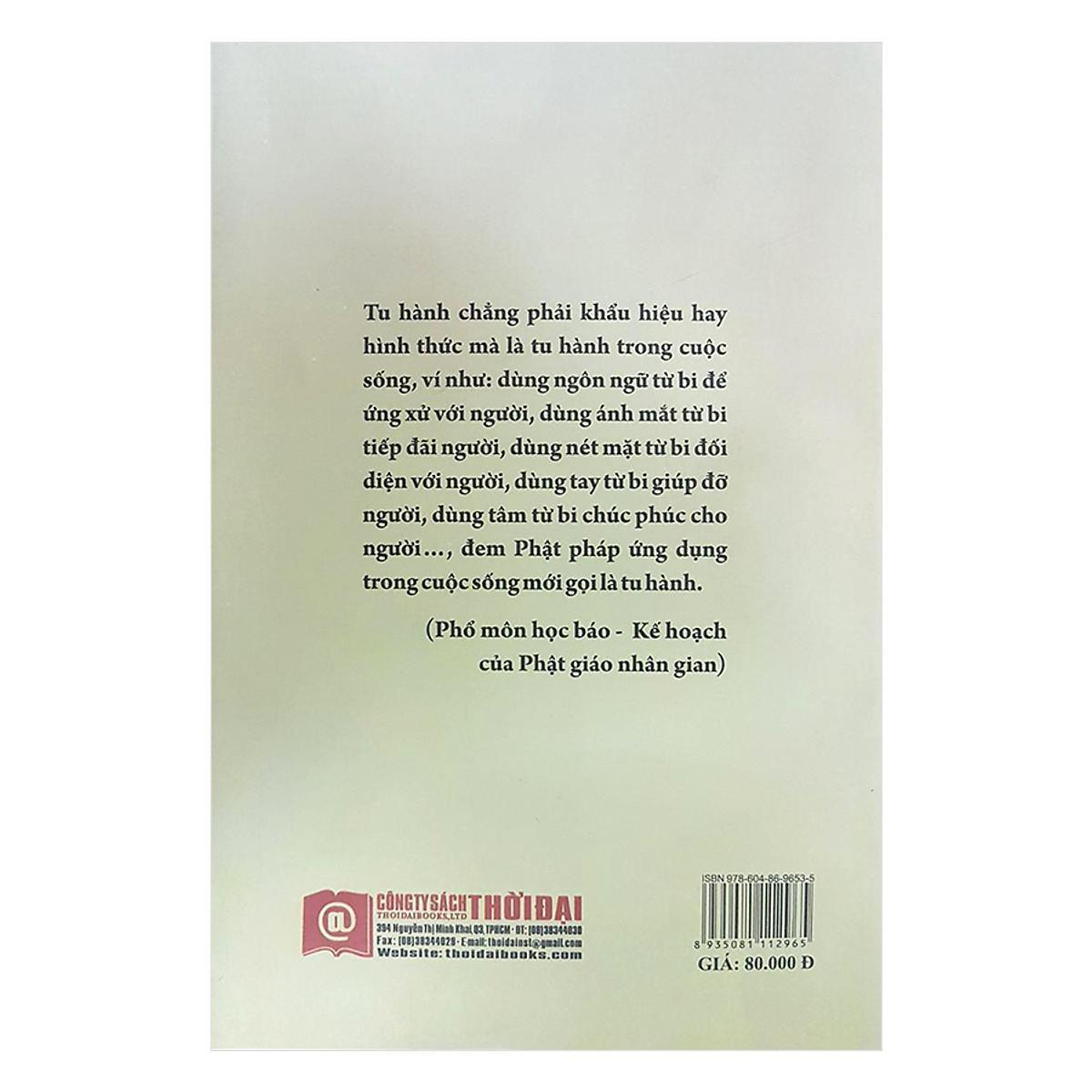Mua tại TiktokNhân Gian Phật Giáo Ngữ Lục (Quyển Trung) Tu hành chẳng phải khẩu hiệu hay hình thức mà là tu hành trong cuộc sống, ví như: dùng ngôn ngữ từ bi để ứng xử với người, dùng ánh mắt từ bi tiếp đãi người, dùng nét mặt từ bi đối diện với người, dùng tay từ bi giúp đỡ người, dùng tâm từ bi chúc phúc cho người..., đem Phật pháp ứng dụng trong cuộc sống mới gọi là tu hành. (Phổ môn học báo - Kế hoạch của Phật giáo nhân gian)