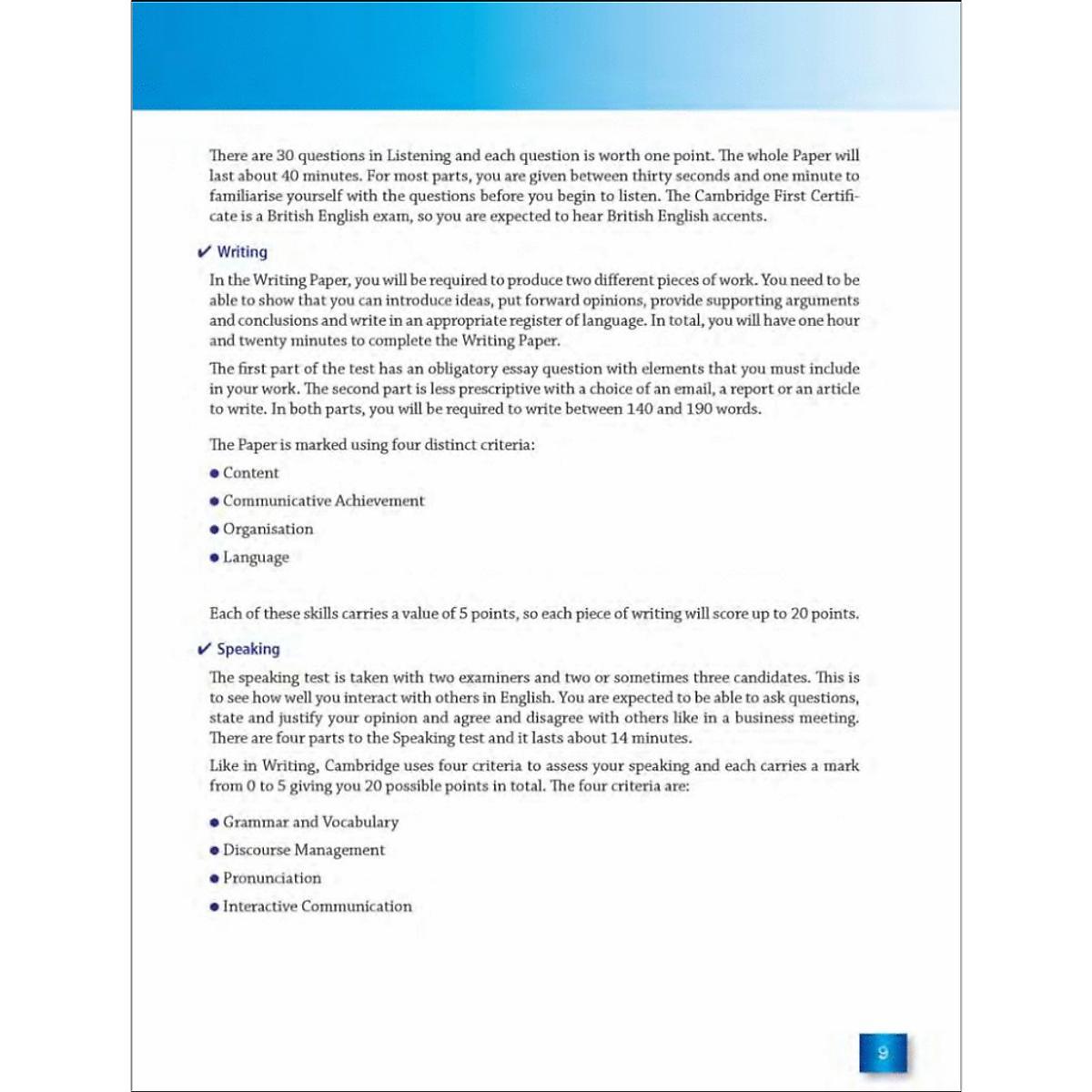Are you expecting to gain the highest score on your FCE? This well-designed book will enable you to not only achieve your goal but also develop your four skills of your success in the Cambridge First Certificate in English
