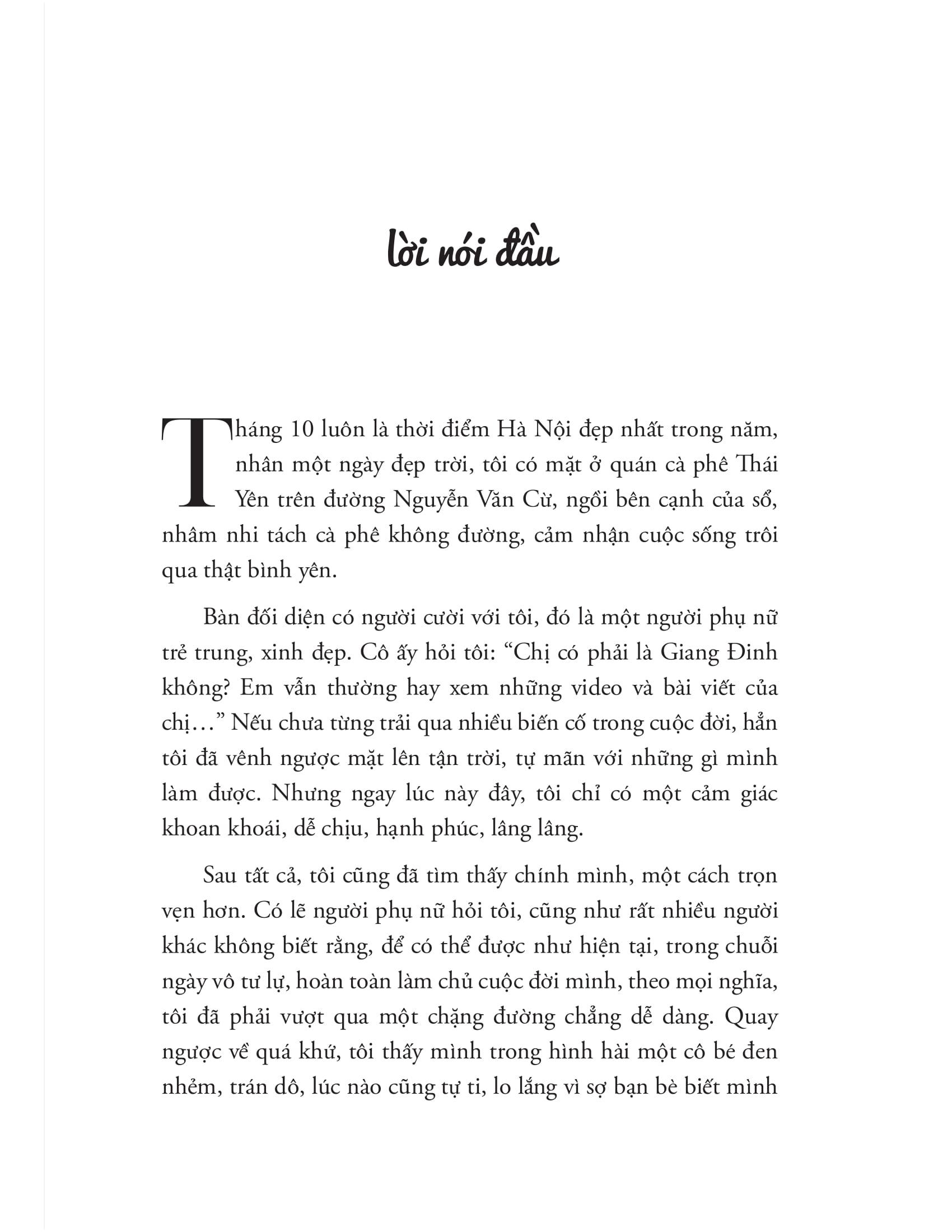- Nếu bạn là nam giới, khi cầm trên tay cuốn sách này, bạn cũng sẽ tìm được điều gì đó thú vị, thay đổi góc nhìn của bạn, phá vỡ những định kiến quen thuộc. TÓM TẮT SÁCH Phiên bản tôi tốt nhất, được tinh chỉnh từ cuốn Lợi thế đàn bà, đổi mới và bổ sung rất nhiều nội dung giá trị, dù vẫn bám vào những câu chuyện, bài học xoay quanh người phụ nữ, nhưng nó không hẳn chỉ dành riêng cho phụ nữ. Phiên bản tôi tốt nhất dành cho bất kỳ ai muốn tìm thấy chính m.ình, hiểu rằng m.ình là người duy nhất chịu trách nhiệm cho mọi thứ đến với m.ình trong đời, nỗ lực để hoàn thiện m.ình mỗi ngày. Như mọi cuốn sách khác của Giang Đinh, Phiên bản tôi tốt nhất hướng đến thay đổi tư duy. Bởi thay đổi tư duy, bao giờ cũng thế, chính là thay đổi cuộc đời! CUỐN SÁCH CÓ GÌ ĐẶC BIỆT