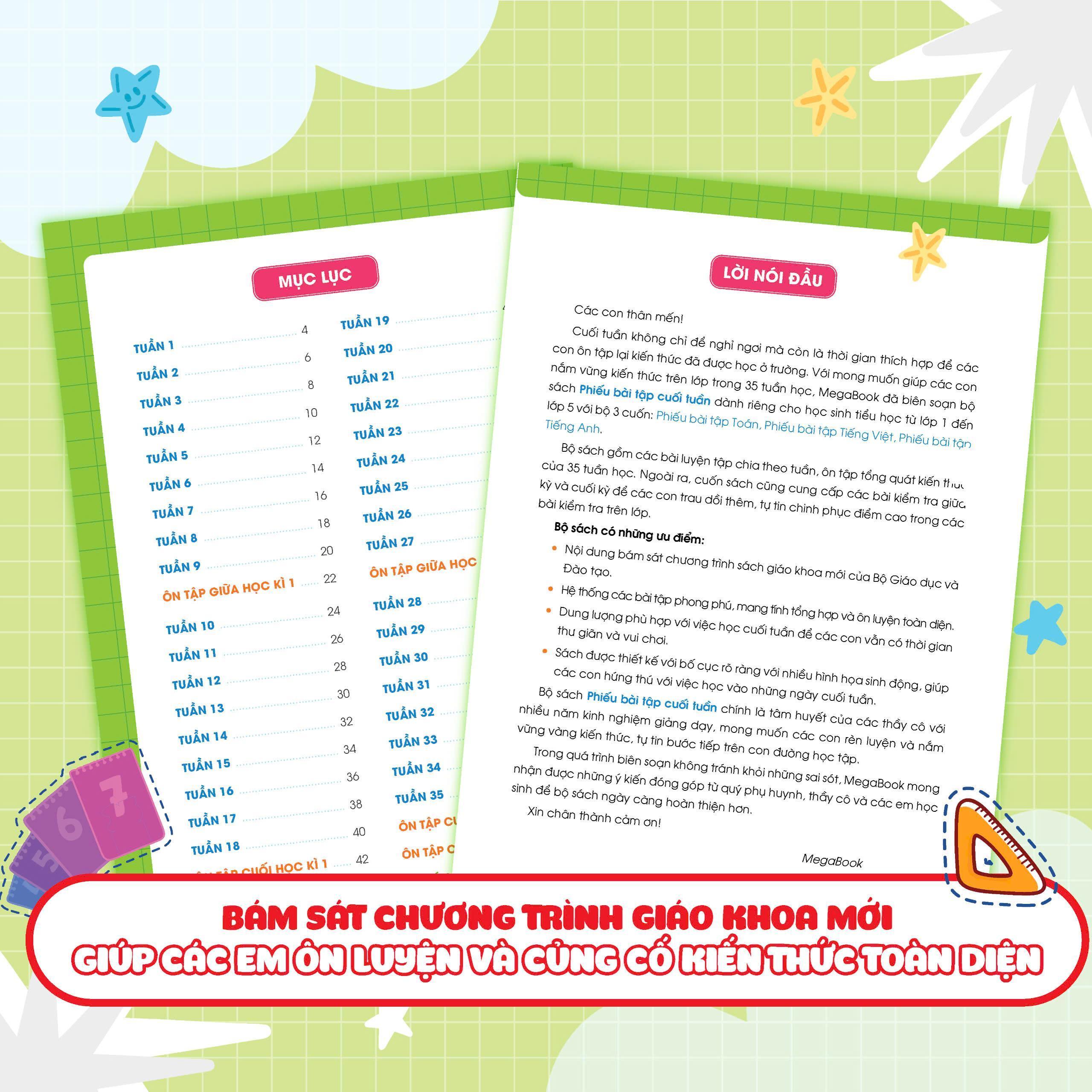 ✨Sách - Phiếu Bài Tập Cuối Tuần Toán Lớp 1 - Megabook
