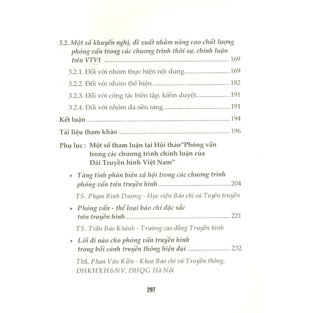 cũng là một trong số những nghiên cứu về phỏng vấn, nhưng chủ yếu trên bình diện của chính luận truyền hình. Nội dung cuốn sách