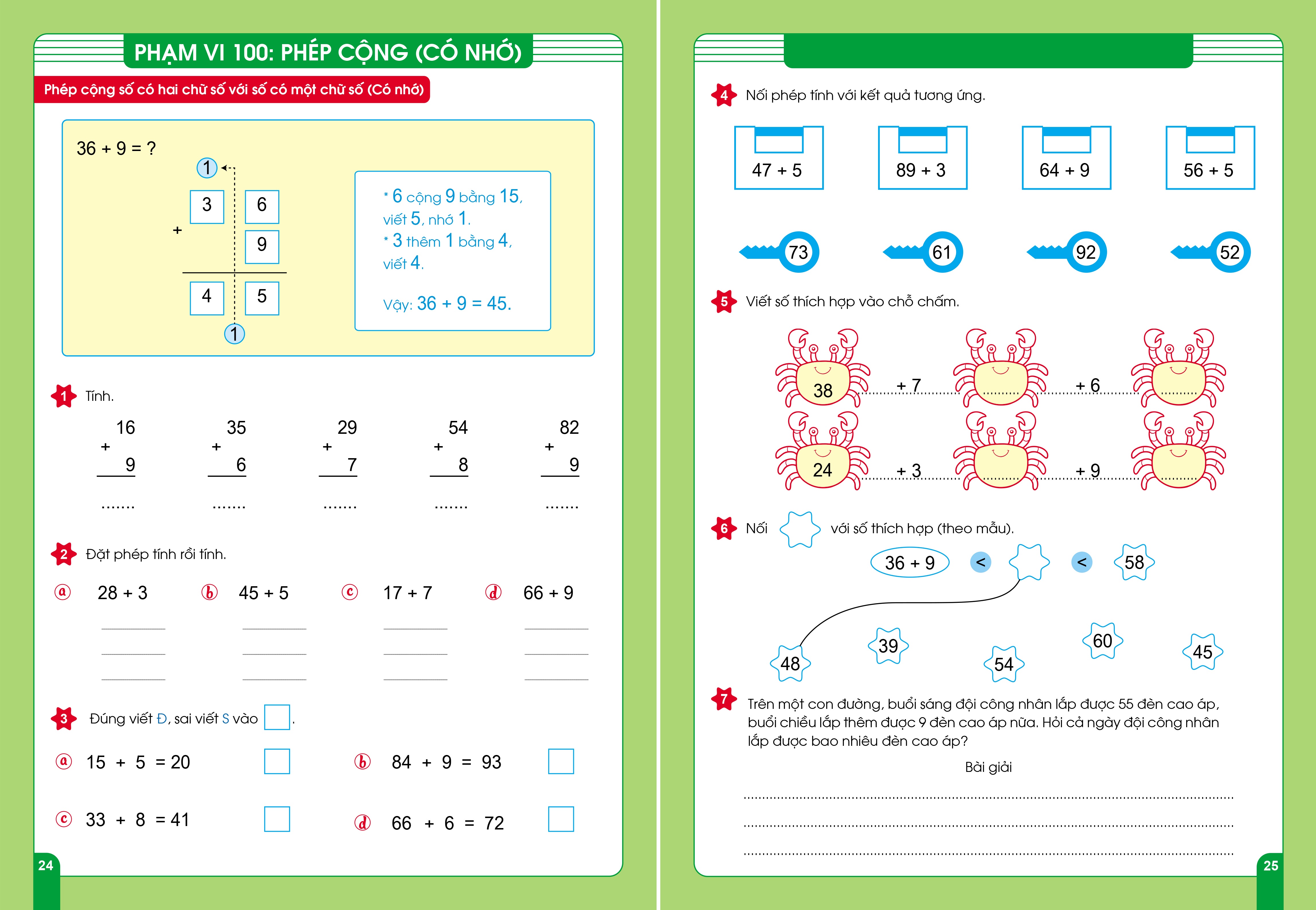 Sách được in khổ to và biên soạn theo sách giáo khoa chương trình mới, nội dung được minh họa nhiều hình ảnh ngộ nghĩnh nhằm thu hút các bé tập trung học và nhìn hình để tư duy nắm bắt kiến thức toán học dễ hiểu hơn, nhớ lâu hơn và hiệu quả tốt hơn.