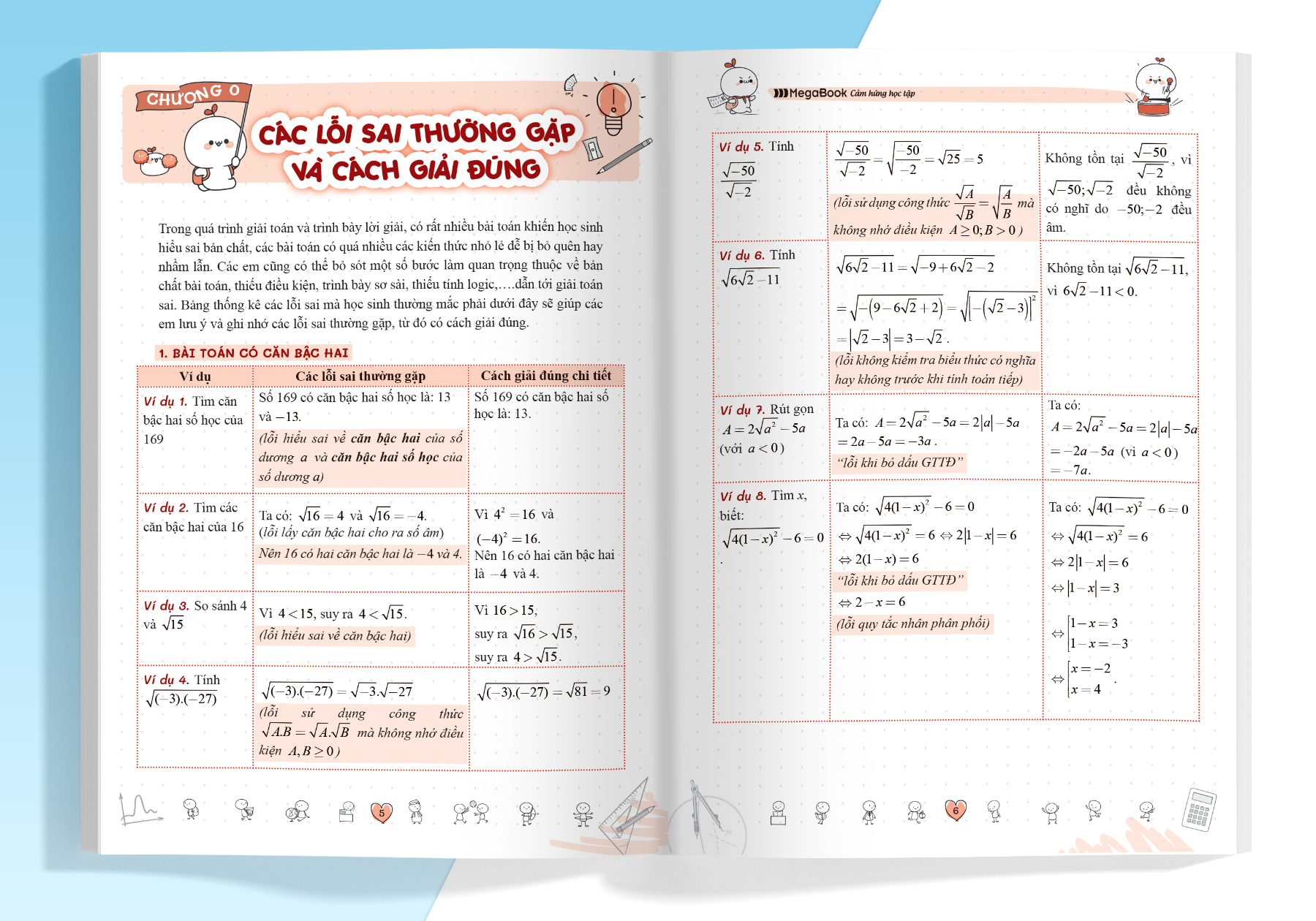 Sổ tay dành riêng một chương để thống kê các lỗi sai thường gặp khi giải toán. Đây là các lỗi sai của học sinh được tổng hợp từ các thầy cô nhiều năm kinh nghiệm trong việc giảng dạy, chấm thi kỳ thi vào 10. Điều này giúp bạn nhận ra những sai lầm thường mắc phải và tránh lặp lại chúng. Chương này cũng cung cấp cách giải đúng cho từng lỗi, giúp bạn hiểu rõ và sửa chữa những sai sót của mình.