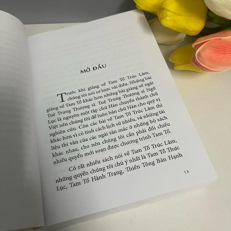 Mua tại TiktokVới tinh thần khôi phục lại Phật giáo đời Trần, chúng tôi cho xuất bản quyển Tam Tổ Trúc Lâm để giới thiệu cùng Phật tử Việt Nam có cơ hội nghiên cứu và học tập. Lý đáng chúng tôi phải căn cứ một nguyên bản chữ Hán và cho in đầy đủ ở phần sau. Song vì những quyển Tam Tổ Thực Lục, Tam Tổ Hành Trạng…còn nhiều thiếu sót, nên chúng tôi không thể căn cứ vào một bản được, mà còn phải góp nhặt tra cứu những bản liên hệ như : Thánh Đăng Lục, Thiền Tông Bản Hạnh…để bổ túc. Sau này những tập Văn Học Đời Lý, Văn Học Đời Trần của ông Ngô Tất Tố, Phật Giáo Sử Luận của Nguyễn Lang và Thơ Văn Lý Trần của nhà xuất bản Khoa Học Xã Hội giúp tư liệu khá nhiều cho chúng tôi, cộng thêm các bộ Quốc Sử càng làm sáng tỏ hơn. Tuy nhiên, chúng tôi vẫn chưa hài lòng về vị Tổ thứ ba (Huyền Quang), vì quyển Tổ Gia Thực Lục do người trong thân tộc ghi chép đời Ngài, không phải một đệ tử xuất gia thân tín ghi. Cho nên những việc tạp thì ghi đủ, còn việc truyền pháp, đắc pháp, vấn đáp, giảng đạo thì ghi quá đơn lược. Vì vậy, phần sử của Ngải nhiều điểm còn nghi vấn chưa được sáng tỏ.