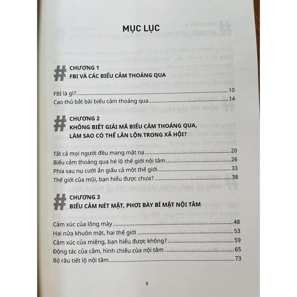 Cuốn sách này sẽ tổng kết chi tiết những kinh nghiệm thực tiễn của chuyên viên FBI trong việc giải mã biểu cảm thoáng qua, mở ra trước mắt chúng ta một thế giới ngôn ngữ bí ẩn khác. Nắm bắt được kĩ xảo này, biết đâu bạn cũng có thể trở thành một “đặc vụ FBI” trong đời sống, nhờ vào tài giải mã cảm xúc, đọc hiểu nội tâm để giành thế chủ động trong giao tiếp xã hội.