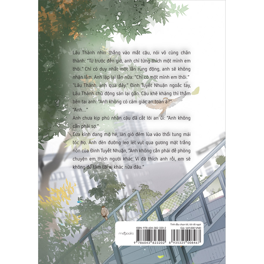 - Bản thường: Bìa mềm, 1 Bookmark in 2 mặt. Giới thiệu nội dung: Lâu Thành nhìn thẳng vào mắt cậu, nói vô cùng chân thành: “Từ trước đến giờ, anh chỉ từng thích một mình em thôi.” Chỉ có duy nhất một lần rung động, anh sẽ không nhận lầm. Anh lặp lại lần nữa: “Chỉ có một mình em thôi.” “Lâu Thành, anh qua đây.” Đinh Tuyết Nhuận ngoắc tay, Lâu Thành chủ động sán lại gần. Cậu khẽ khàng thì thầm bên tai anh: “Anh không có cảm giác an toàn à?” “Anh…” Anh chưa kịp phủ nhận cậu đã cất lời an ủi: “Anh không cần phải sợ.” Cửa kính đang mở hé, làn gió đêm lùa vào thổi tung mái tóc họ. Ánh đèn đường leo lét vụt qua gương mặt trắng nõn của Đinh Tuyết Nhuận, “Anh không cần phải đề phòng chuyện em thích người khác. Vì đã thích anh rồi, em sẽ không để tâm tới ai khác nữa đâu.”