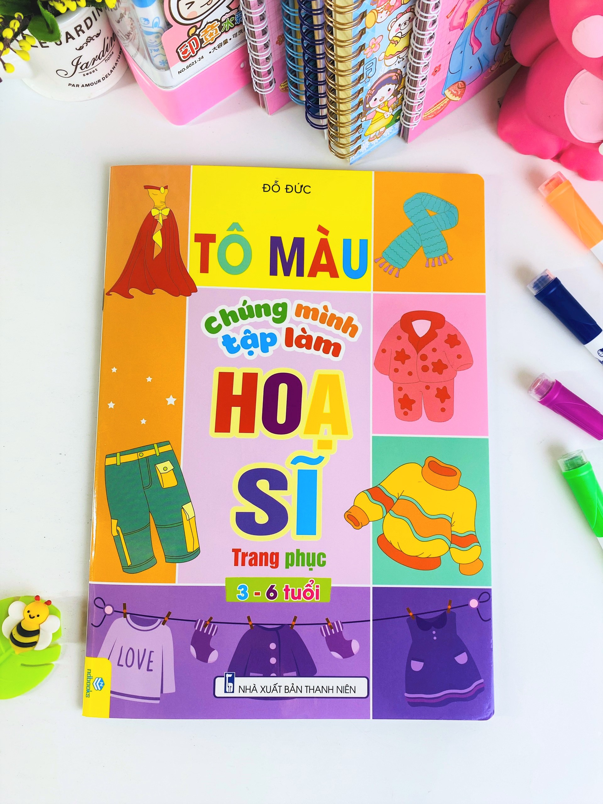 Bộ Sách "Tô màu chúng mình tập làm họa sĩ" bao gồm các chủ đề khác nhau như: rau củ, đông vật, thực vật, gia đình, khoa học,...