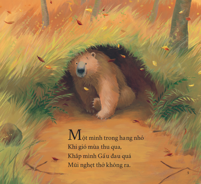 Bao gồm 5 cuốn sách: Gấu chẳng chờ nổi, Gấu muốn nữa, Gấu sợ hãi, Gấu thay răng, Gấu bị ốm.