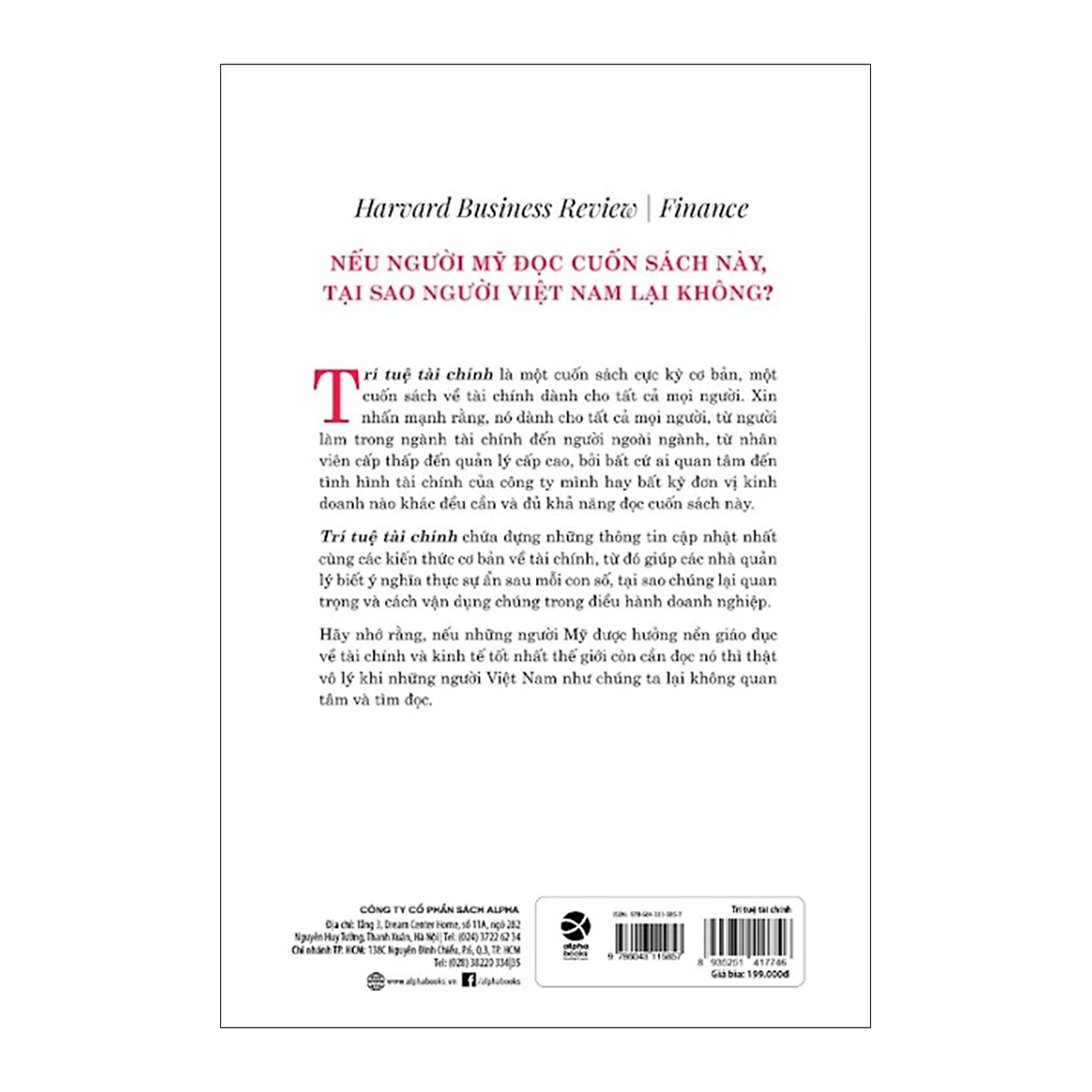 Mua tại TiktokSách - Trí Tuệ Tài Chính - Dành Cho Nhà Quản Lý Không Chuyên Về Tài Chính Là một nhà quản lý nhân sự, bạn phải sử dụng dữ liệu tài chính để đưa ra quyết định, phân bổ nguồn lực và lập ngân sách chi phí. Nhưng nếu giống như nhiều người làm ở vị trí này, bạn có thể cảm thấy không chắc chắn khi kết hợp tính toán tài chính vào công việc hằng ngày của mình. Và đây là lúc bạn cần đến Trí tuệ tài chính dành cho nhà quản lý nhân sự. Ba tác giả đã trình bày tất tần tật những hiểu biết cần thiết về tài chính dành riêng cho các chuyên gia nhân sự trong cuốn sách này.