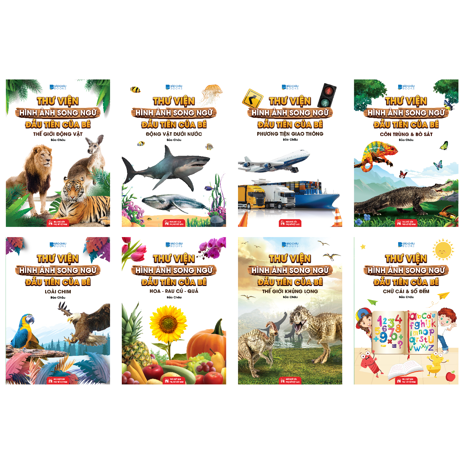 Sách Thư Viện Hình Ảnh Song Ngữ Đầu tiên Của Bé : Thế Giới Động Vật - Động Vật dưới Nước - Phương tiện Giao Thông - Côn Trùng Và Bò Sát với nhiều hình