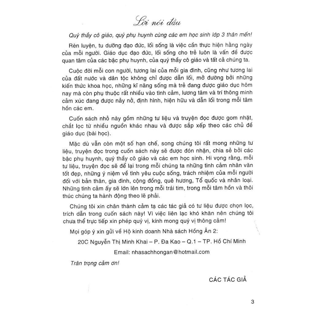 Mặc dù vẫn còn một số hạn chế, song chúng tôi rất mong những tư liệu, truyện đọc trong cuốn sách này sẽ được đón nhận, chia sẻ bởi các bậc phụ huynh, quý thầy cô giáo và các em học sinh. Hi vọng rằng, mỗi tư liệu, truyện đọc sẽ để lại trong mỗi chúng ta những tình cảm nhân văn tốt đẹp, những ý niệm về tình yêu cuộc sống, trách nhiệm của mỗi người đối với bản thân, gia đình, cộng đồng, quê hương, Tổ quốc và nhân loại. Những tình cảm ấy sẽ lớn lên trong mỗi trái tim, trong mỗi tâm hồn và thôi thúc chúng ta hành động theo lẽ phải.