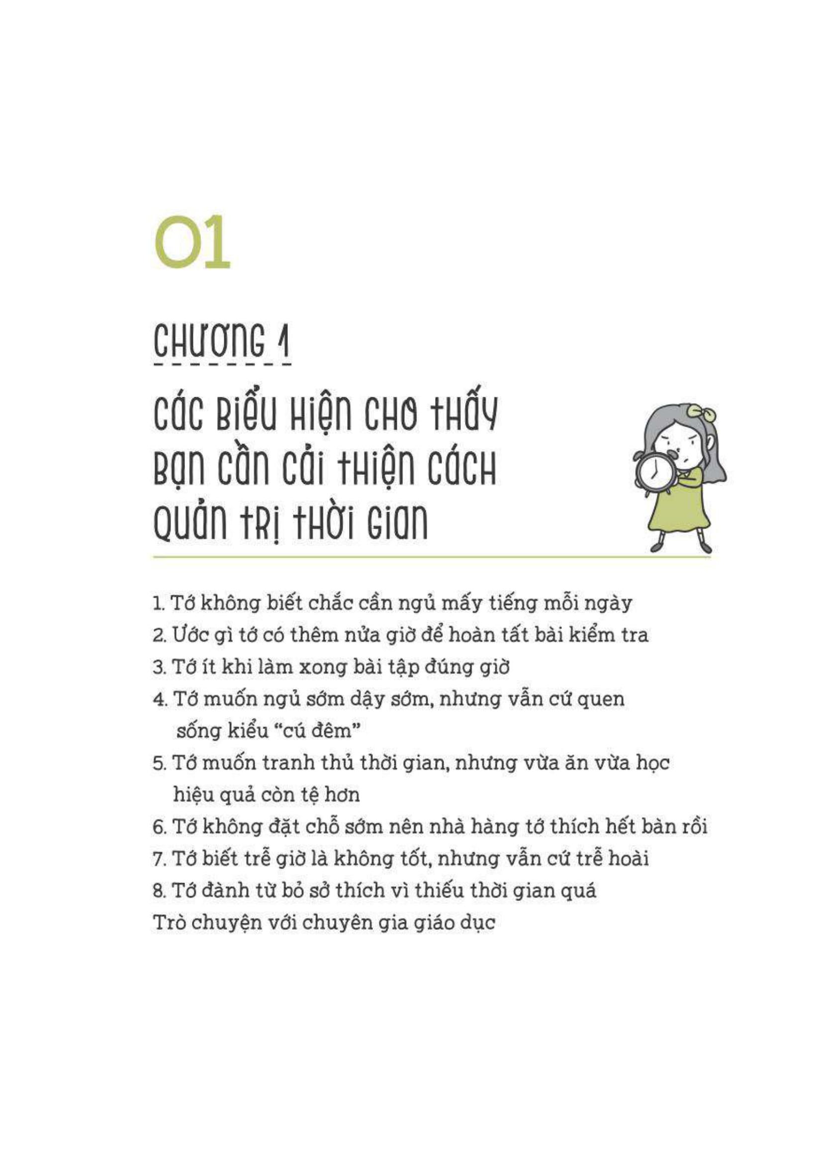 Tự Lập Từ Tiểu Học - Quản Trị Thời Gian Bộ truyện tranh "Tự lập từ tiểu học" là món quà các chuyên gia giáo dục có uy tín tặng cho học sinh tiểu học từ 6 đến 12 tuổi, giúp các bạn phát triển các kỹ năng tự lập và tự chăm sóc bản thân vô cùng thiết thực Bộ sách này có bốn cuốn, tương ứng với bốn phương diện: sắp xếp cuộc sống sao cho khoa học, tận dụng thời gian thật tốt, dùng tiền thật giỏi giang, yêu bản thân và cuộc sống. Nắm vững các kỹ năng tự lập này từ sớm, bạn sẽ được hưởng lợi ích lâu dài và to lớn, làm tốt nhiều việc sau này. Đáng yêu như những món quà, bám sát và đồng hành cùng giai đoạn nhạy cảm của các bạn tiểu học! Bổ khuyết hoàn hảo cho mảng trống về giáo dục tính tự lập mà trường học và cha mẹ chưa để tâm nhiều. Mỗi cuốn gồm gần hơn 100 câu hỏi gần gũi với cuộc sống. Sử dụng hình thức tranh nhiều ô vui nhộn để tái hiện chân thực cuộc sống của các bạn, giúp các bạn tiếp thu thật dễ dàng. Có đủ các kỹ năng độc lập của học sinh tiểu học, giúp các bạn sớm độc lập, quản lý cuộc sống và quản lý bản thân, cha mẹ không còn phải rầy la và lo lắng!