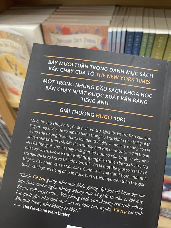 Tác giả: Carl Sagan Dịch giả: Nguyễn Việt Long Nhà xuất bản: Thế Giới Số trang: 572 Kích thước: 14 x 20,5cm Ngày phát hành: 07-04-2023   Giới thiệu sách BẢY MƯƠI TUẦN TRÊN DANH MỤC SÁCH BÁN CHẠY CỦA TỜ NEW YORK TIMES MỘT TRONG NHỮNG ĐẦU SÁCH KHOA HỌC BÁN CHẠY NHẤT ĐƯỢC XUẤT BẢN BẰNG TIẾNG ANH GIẢI THƯỞNG HUGO 1981   Mười ba câu chuyện tuyệt đẹp về Vũ trụ. Qua lời kể trữ tình của Carl Sagan, người đọc sẽ có dịp du hành trong vũ trụ, khám phá thế giới từ vĩ mô của những thiên hà to lớn đến thế giới vi mô của những con vi khuẩn nhỏ bé trên Trái đất, đi từ những nền văn minh xa xưa đến tương lai của thế giới, cho ta thấy mối gắn bó hữu cơ của từng sự việc nhỏ nhặt với vũ trụ bao la và nghe những giọng điệu nhiều bè của Vũ trụ. Vũ trụ đã chỉ là vũ trụ vô tri, hỗn độn, mà còn là một thế giới có trật tự, có tri giác, đầy nhân văn và xúc cảm. Cuốn sách của Carl Sagan, một nhà thiên văn học nổi tiếng đã bán được hơn 5 triệu bản trên toàn thế giới.   Lời khen tặng dành cho Vũ trụ   “Cuốn Vũ trụ giống như một khóa giảng đại học về khoa học mà bạn luôn muốn nghe nhưng không biết vị giáo sư nào có thể dạy. Sagan viết tuyệt vời. Với phong cách văn chương trữ tình, với sự bao quát gần như mọi mặt của tri thức loài người, Vũ trụ tài tình đến mức tưởng như không có thật.” – Cleveland Plain Dealer   “Carl Sagan là một trong số những nhà khoa học xuất sắc nhất của thời đại chúng ta… Ông đã làm công việc viết lách cừ khôi khi đào sâu vào quá khứ, hiện tại và tương lai của khoa học, trong việc xử lý sự bao la gây choáng váng trí óc của cái vũ trụ mà trong đó chúng ta đang tồn tại.”
