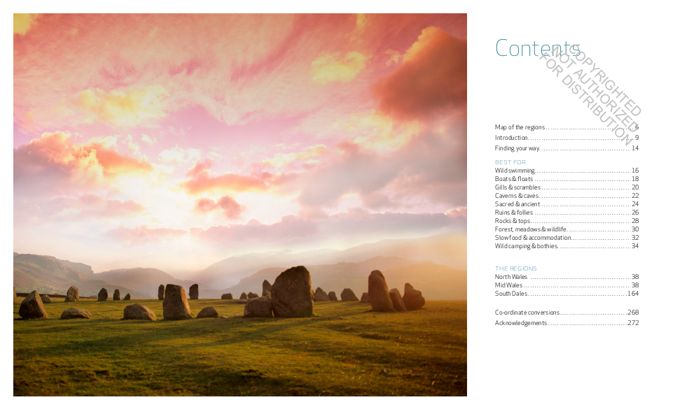 ---------------------------------------- A new compendium of adventures, from the best-selling Wild Guide series (winner of travel guidebook of the year 2015). This guide to Wales and the Welsh Marches, one of Europe's fastest growing adventure holiday destinations, explores the hidden parts of its better known tourist areas, as well many more remote regions, rarely visited by tourists. Guiding you to over 800 wild swims, ancient forests, lost ruins and hidden beaches. Including inns, wild camping, local crafts, artisan whisky distilleries and wild places to stay. Mesmerising photography - a beautiful giftable book. For the discerning explorer, adventurous family and those seeking the ultimate weekend escape. Packed with practical information including GPX co-ordinates and 25 maps