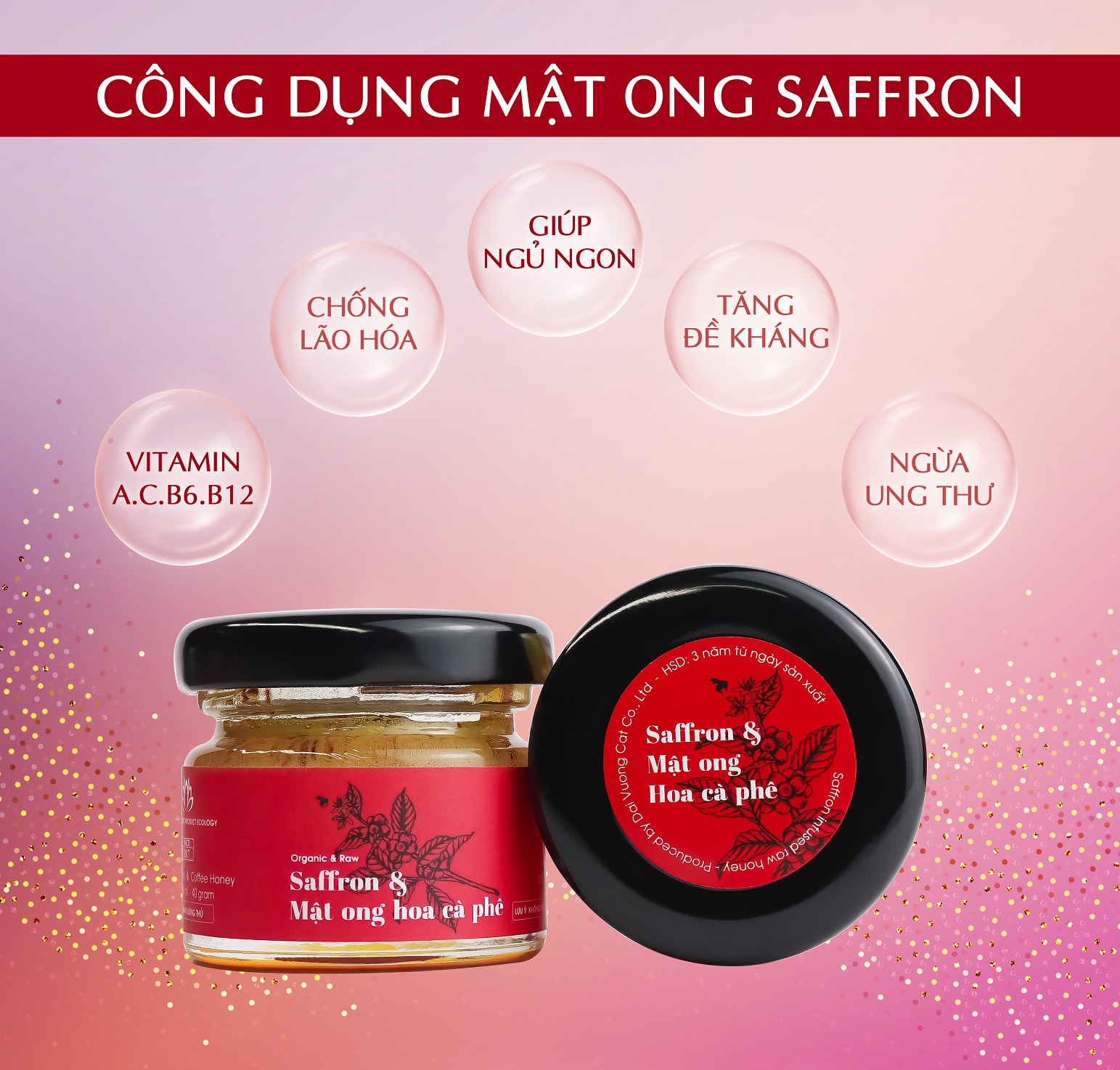 - Thành phần: saffron nhụy hoa nghệ tây super negin Organic và mật ong hoa cà phê nguyên chất 100%