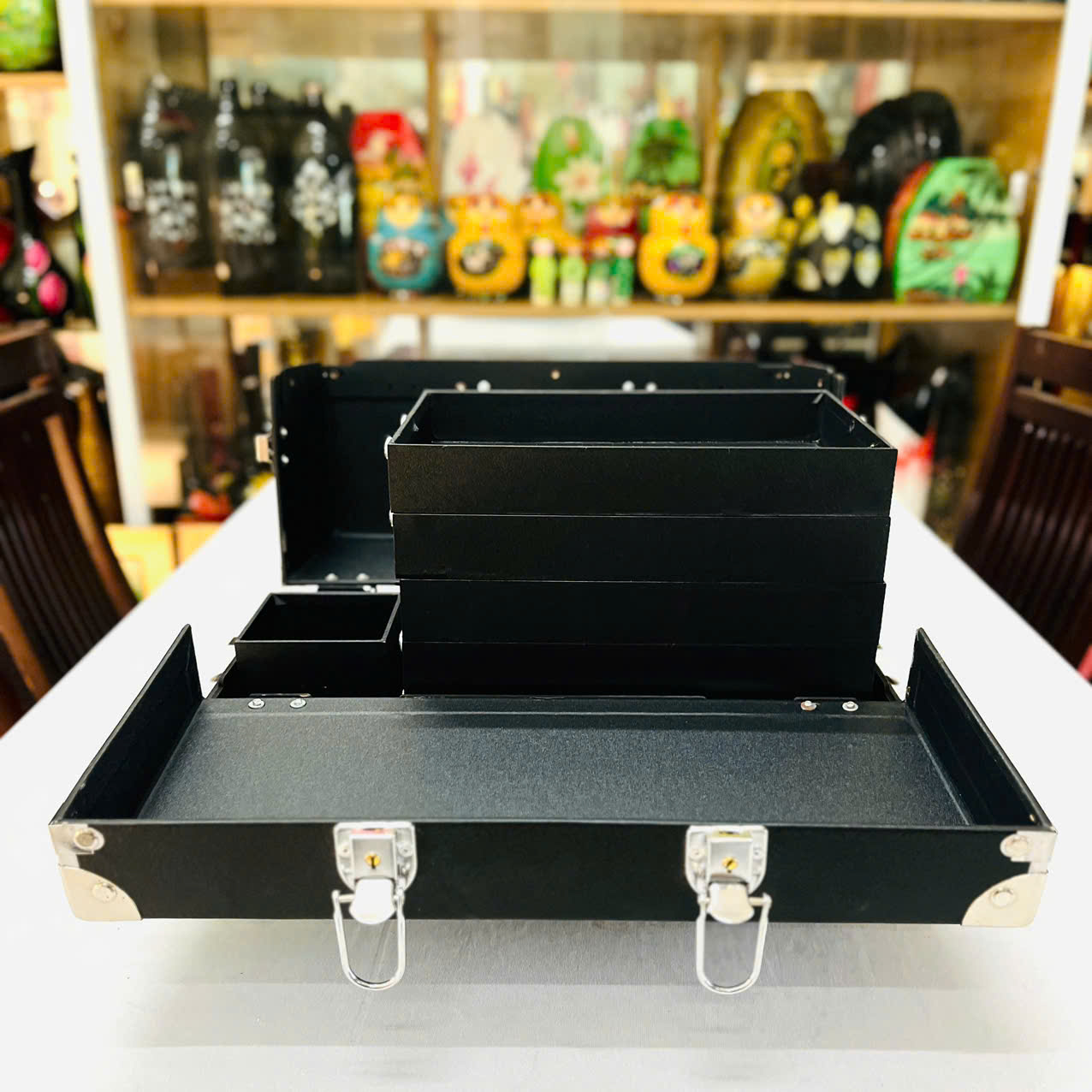 Cốp nail đa năng, nhiều ngăn chứa, đựng mỹ phẩm, dụng cụ phun xăm, nối mi, đồ nail chuyên nghiệp với kiểu dáng độc đáo, thời trang, sang trọng Thiết kế mâm gỗ kéo