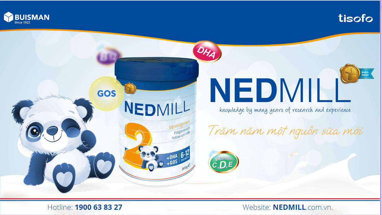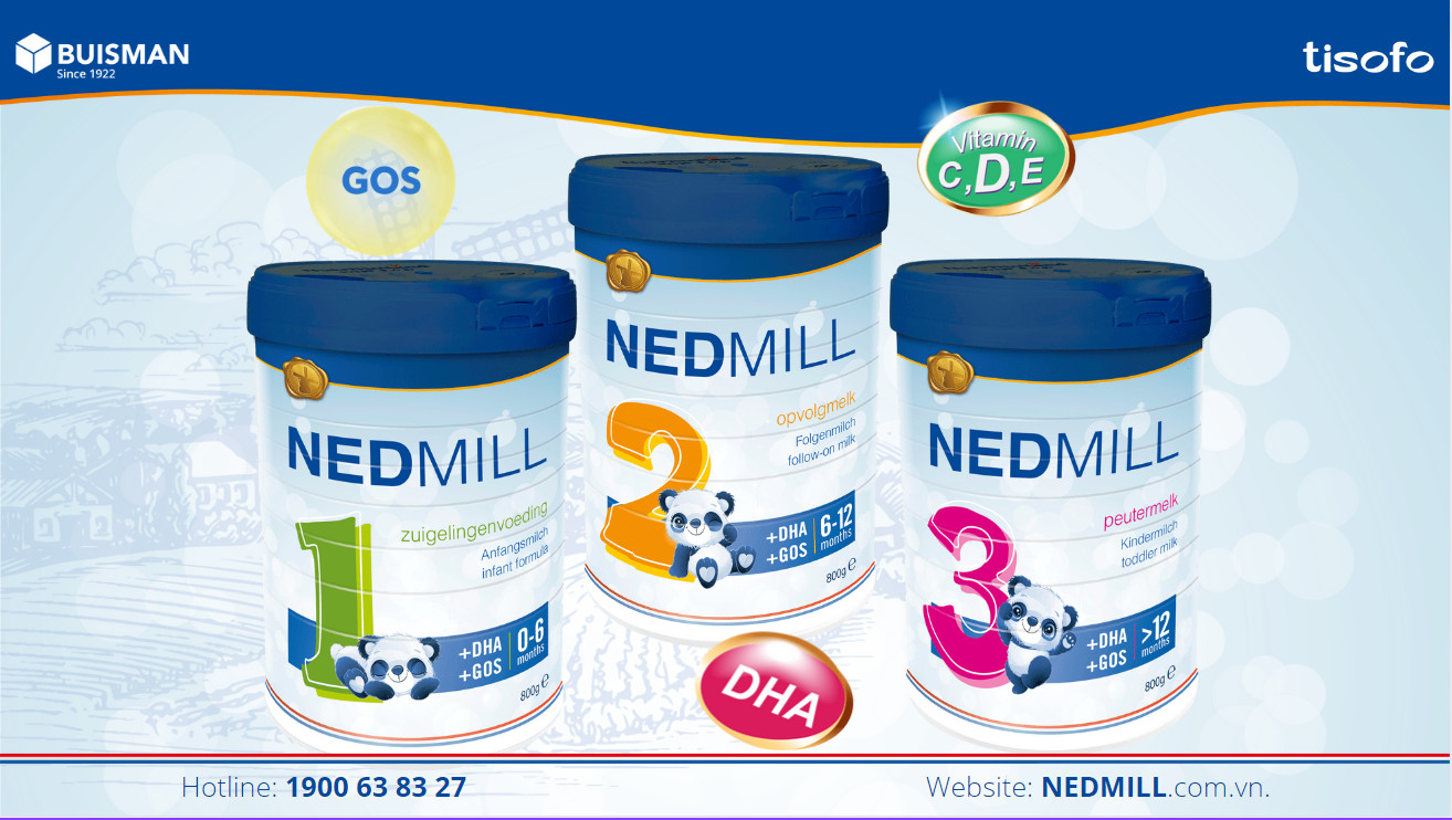 NEDMILL Stage 2: dành cho trẻ từ 6-12 tháng tuổi. Thích hợp là một phần của chế độ ăn cân bằng đa dạng.