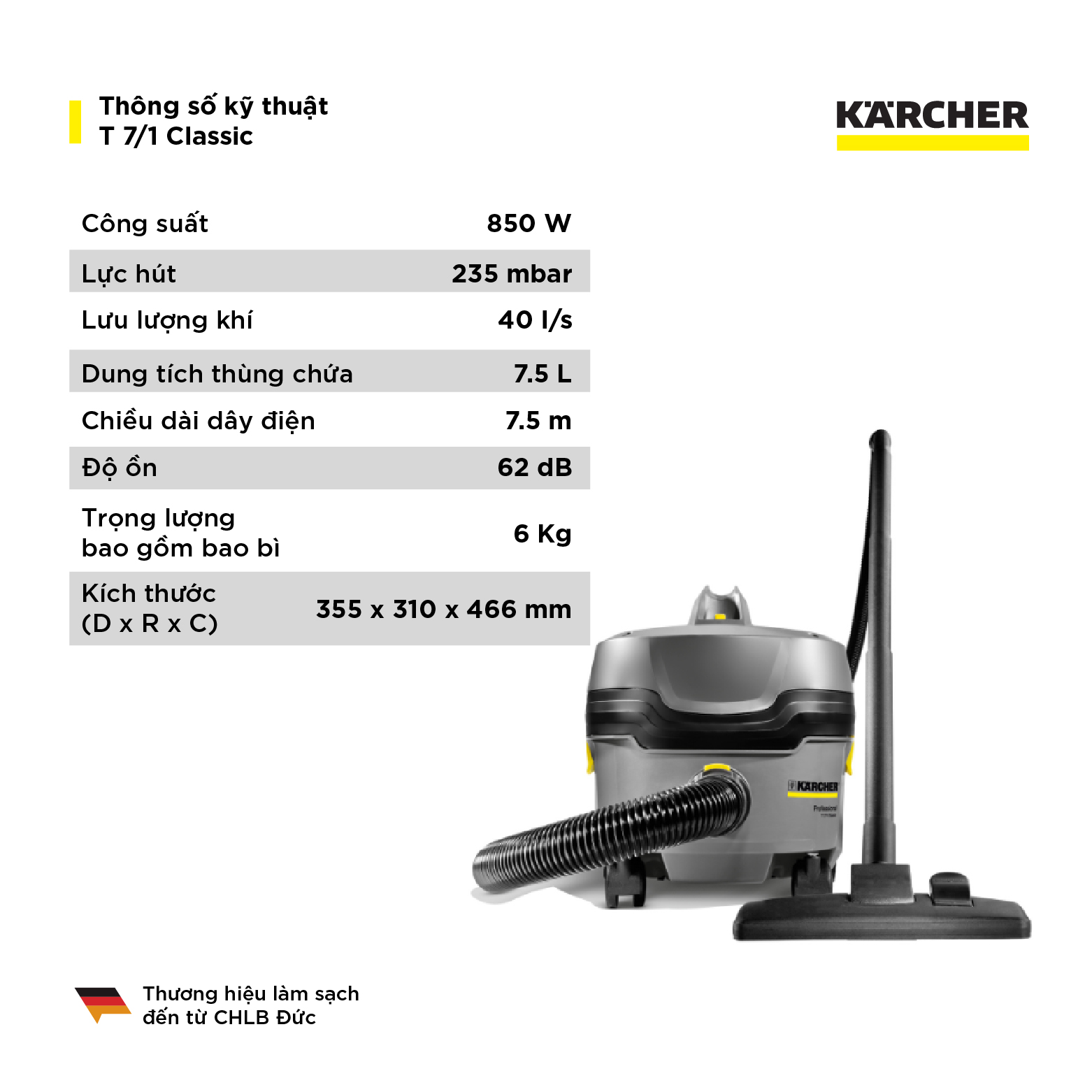 ✨[Sản xuất Châu Âu] Máy hút bụi khô công nghiệp Karcher T 7/1 Classic - Hàng chính hãng