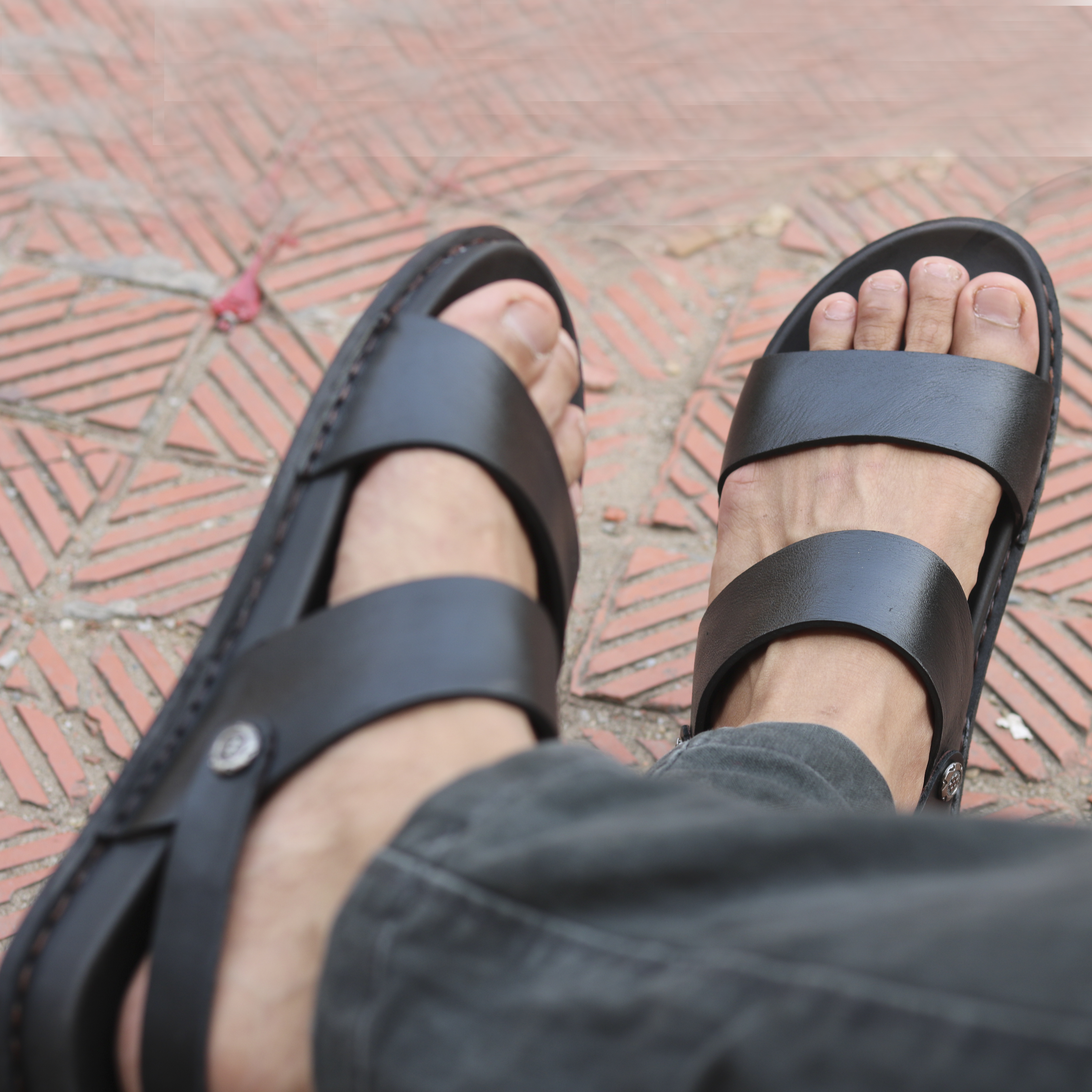 - Sandal Nam với chất liệu Da Bò bền đẹp kết hợp đế cao su êm nhẹ chống trơn trượt giúp bạn Nam luôn thoải mái, tự tin khi đi chơi, dạo phố, đi làm