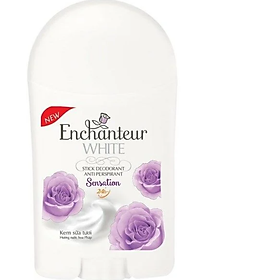 - Chiết xuất kem sữa tươi hòa quyện cùng hương hoa giúp vùng da dưới cánh tay trắng mịn, dễ chịu suốt ngày dài. Bộ sưu tập 4 phong cách mùi hương từ Enchanteur và các nốt hương thể hiện đúng phong cách của Nàng: